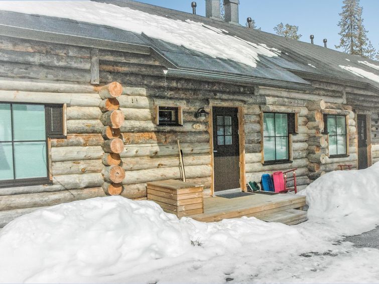 40 km to the north from Kolari, lake Äkäslompolojärvi 2,5 km, swimming beach 2,9 km. Apartment in a row house made from kelo log. Built in September 2017. Apartment area 57 m², 13 m² in the loft.