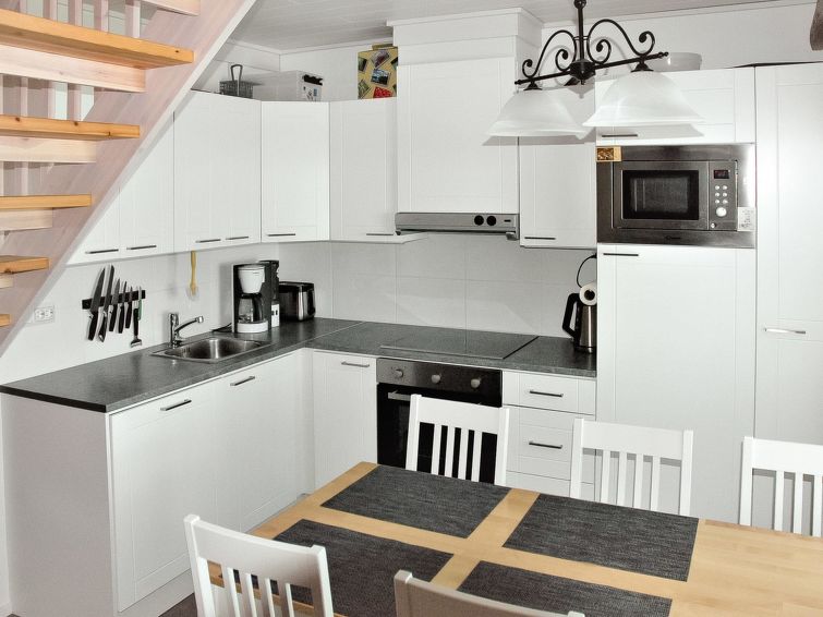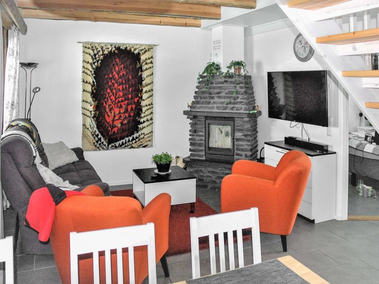More: Equipment in the apartment: Soundbar and Bluetooth speaker, child equipment (cot, high chair for a baby, potty and toilet training seat), heating with ecological geothermal heating. Well-equipped apartment in the row house in Äkäslompolo village, in the Maahinen area, near the road Tunturintie. Apartment is located in the quiet cabin district. The apartment is ideal for down hill skiers as well as cross-country skiers. Pets are not allowed in the apartment. Final cleaning is included in the price, bed linen can be rented.