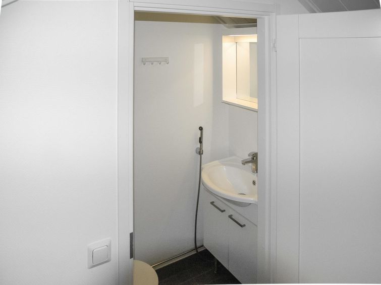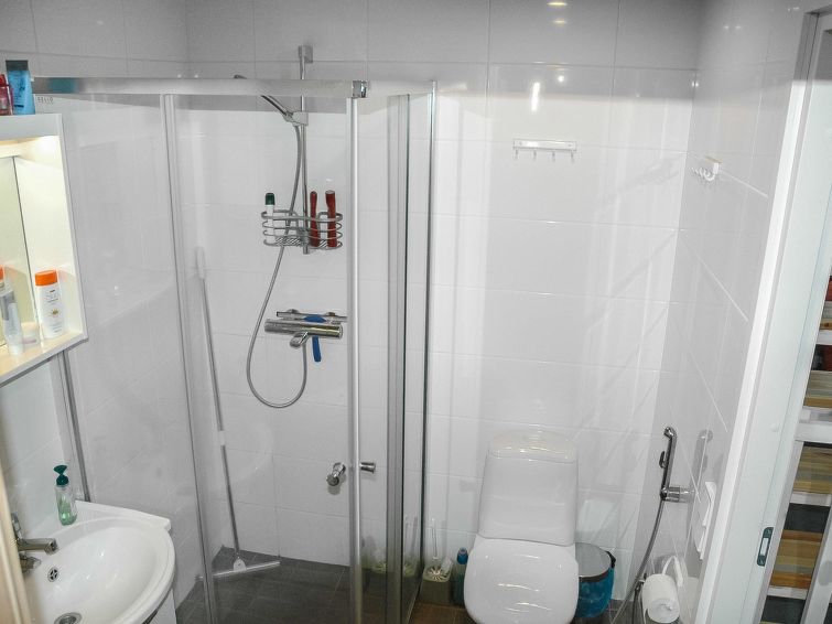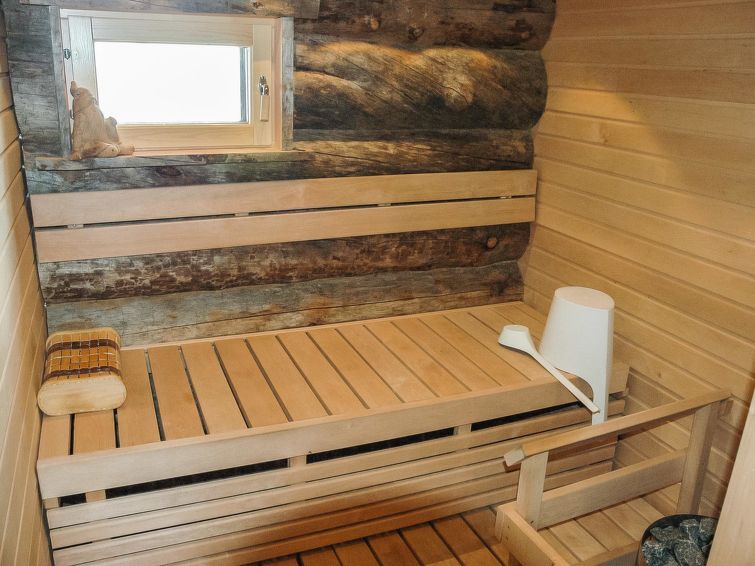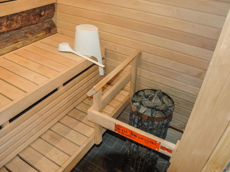 Living room/kitchen, one bedroom with two single beds, 3 single beds in the loft, sauna (electric sauna stove), washroom, 2 x WC (one in the loft and the another in the washroom). The housing company's shared ski maintenance and storage facilities are located in the basement. Entrance from the outside.