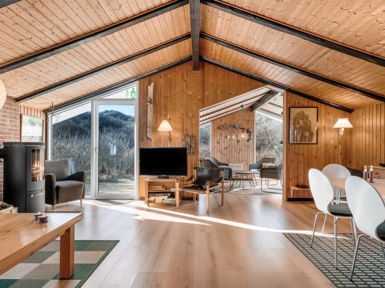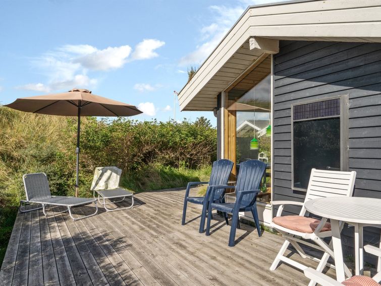 "Madita" - 310m from the sea in NW Jutland", 3 rom hus 87 m2. Passer for 6 voksne. Stue med, TV og radio. 1 rom med 2 senger. 1 rom med, 1 dobbeltseng. 1 rom med, 1 x 2 køysenger. Kjøkken (4 kokeplater, stekeovn, mikrobølgeovn, frys). Dusj/WC. Fasiliteter: Internett (trådløs LAN [WLAN]). Max kjæledyr / hund tillatt 1 kjæledyr / hund tillatt.
