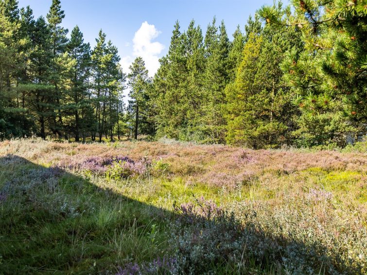 Enmannsbolig, bygget i 1975. 1.4 km fra sjøen. Privat: uberørt tomt 2'533 m2. Terrasse (36 m2), lekeplass (huske). I huset: badstu, vaskemaskin, tørketrommel. El-ladestasjon. Daglivarehandel 1.6 km. Golfbane 1 km. Eieren godtar ikke noen ungdomsgrupper.