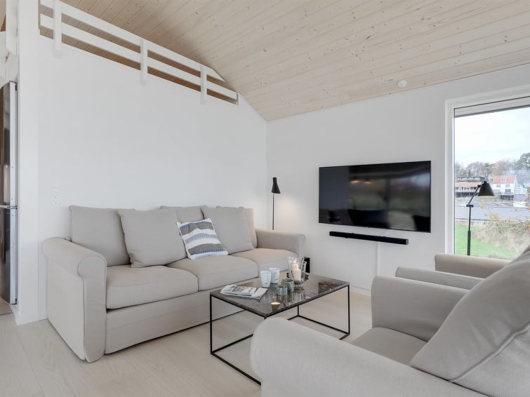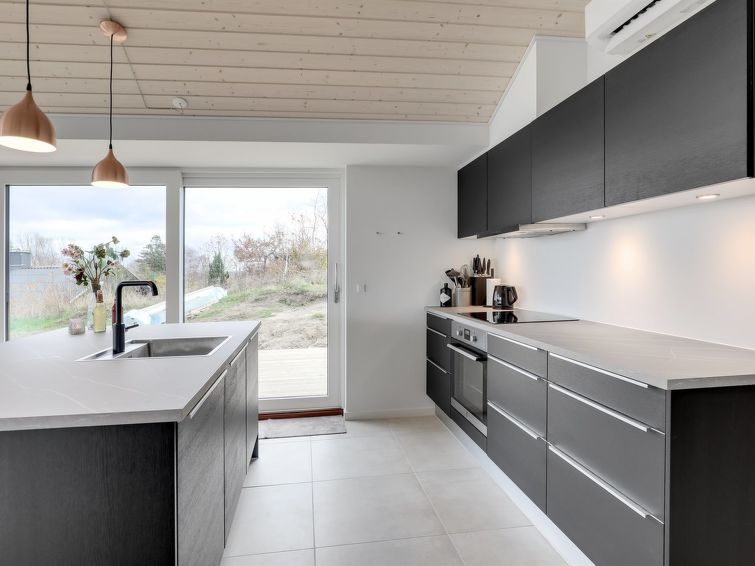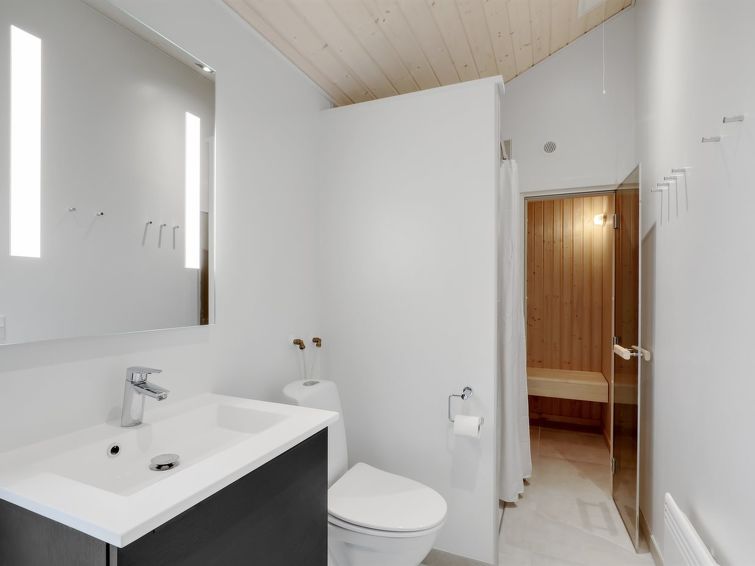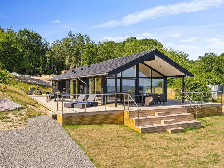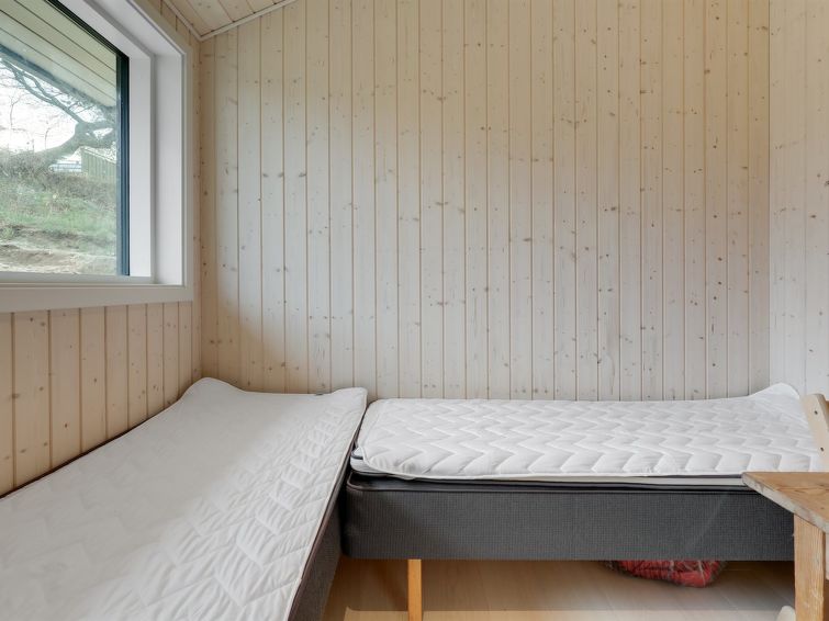 Enmannsbolig, bygget i 2023. 200 m fra sjøen. Privat: uberørt tomt 1'200 m2. Utendørs dusj, terrasse (150 m2), grill. I huset: badstu, vaskemaskin, tørketrommel. Parkering ved hbrukt. El-ladestasjon. Daglivarehandel 800 m. Golfbane 8.1 km. Eieren godtar ikke noen ungdomsgrupper.