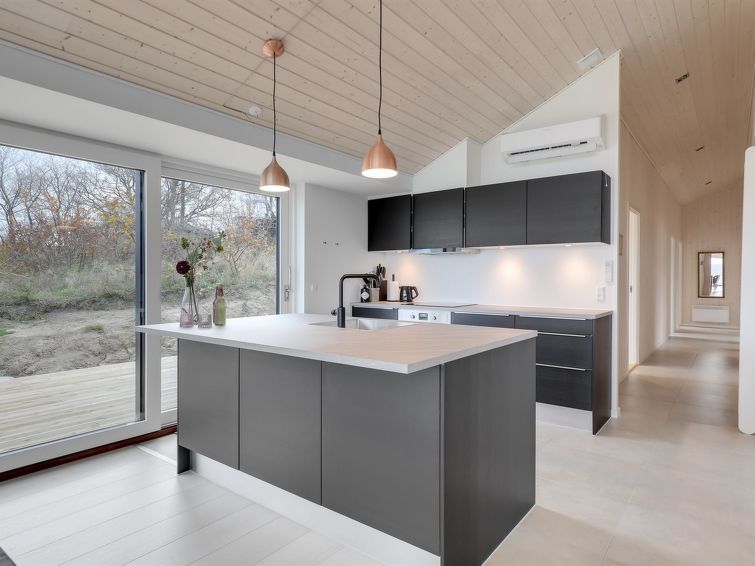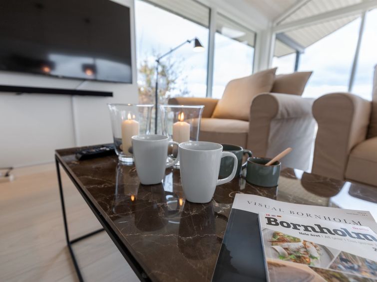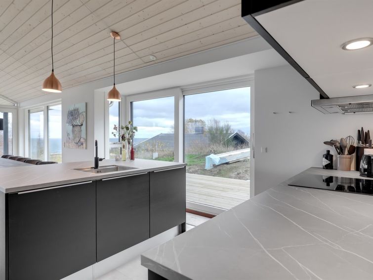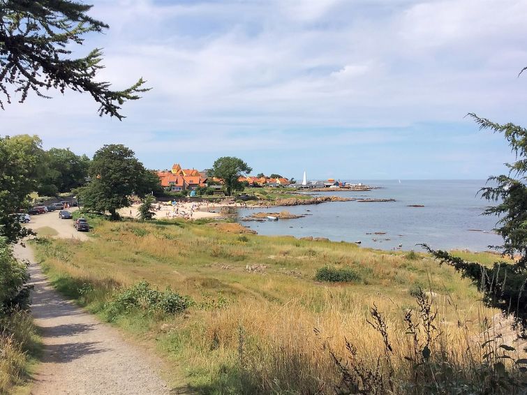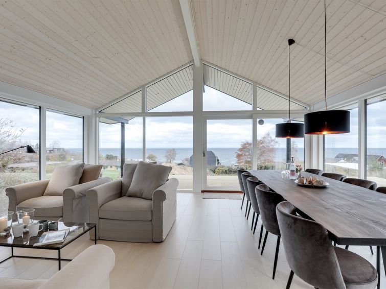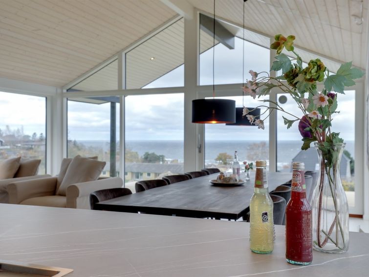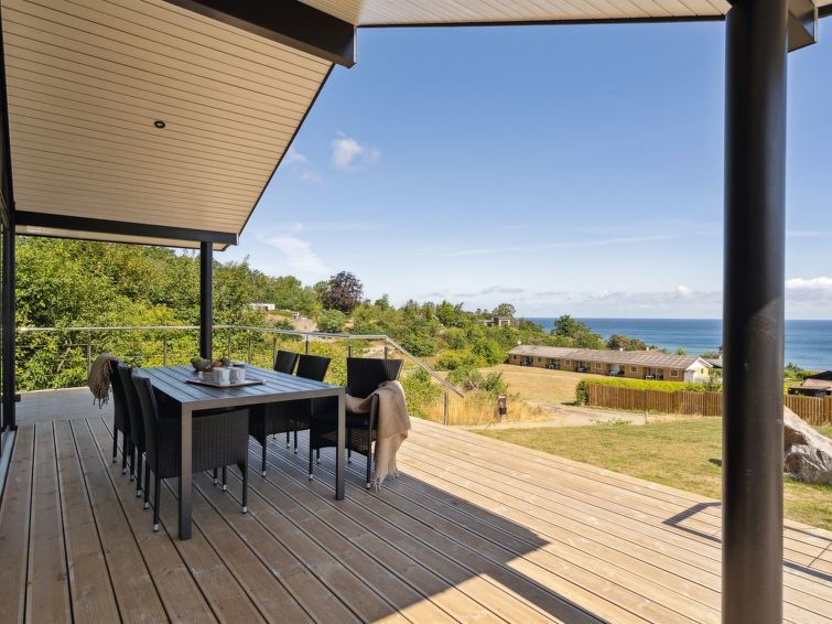 "Maike" - 200m from the sea in Bornholm", 5 rom hus 132 m2. Passer for 10 voksne. Stue med, TV og radio. 1 rom med, 1 dobbeltseng. 1 rom med, 1 dobbeltseng. 1 rom med, 1 dobbeltseng. 1 rom med, 1 dobbeltseng. 1 rom med 2 senger. Kjøkken (stekeovn, oppvaskmaskin, 4 keramiske kokeplater, mikrobølgeovn, frys). 2 dusjer/WC, boblebad. Terrasse 18 m2, dekt. Utsikt av havet. Fasiliteter: høy barnestol. Internett (trådløs LAN [WLAN]). Vennligst merk: røykfri bolig.