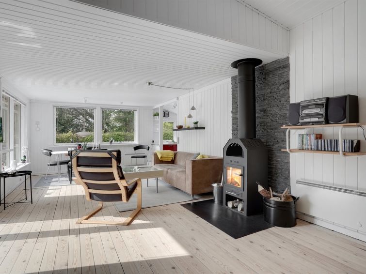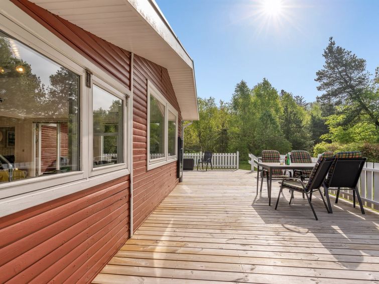 "Mainio" - 800m from the sea in NE Jutland", 3 rom hus 101 m2. Passer for 6 voksne. Stue med, TV, radio og DVD. 1 rom med, 1 dobbeltseng. 1 rom med, 1 dobbeltseng. 1 rom med 2 senger. Kjøkken (stekeovn, oppvaskmaskin, 4 keramiske kokeplater, mikrobølgeovn, frys). Dusj/WC. Fasiliteter: høy barnestol barneseng (ekstra). Internett (trådløs LAN [WLAN]). Vennligst merk: røykfri bolig.