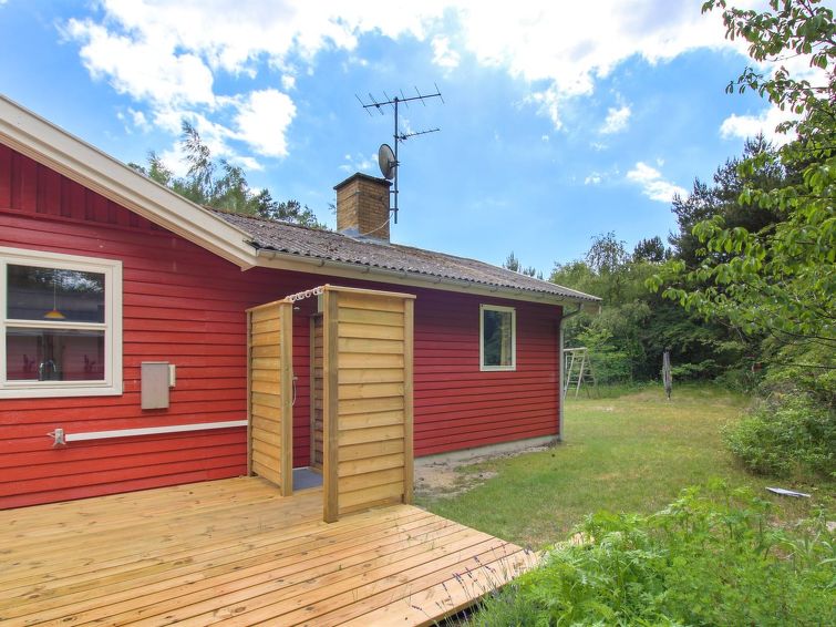 Enmannsbolig, bygget i 1972. 300 m fra sjøen. Privat: uberørt tomt 2'500 m2. Utendørs dusj, terrasse (40 m2), lekeplass (huske). I huset: vaskemaskin. Parkering ved hbrukt. Bilporten. Daglivarehandel 4.5 km. Eieren godtar ikke noen ungdomsgrupper.