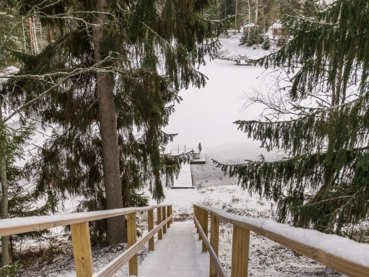 95 km north-west of Helsinki, swimming pond 50 m (length 85 m, width 50 m, swamp based, quite clear watered), own pier, but the pond itself is in shared use with other customers.