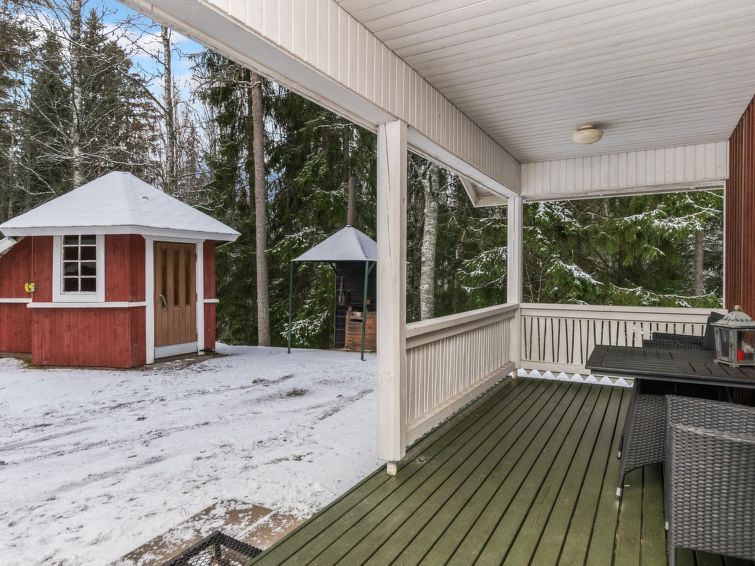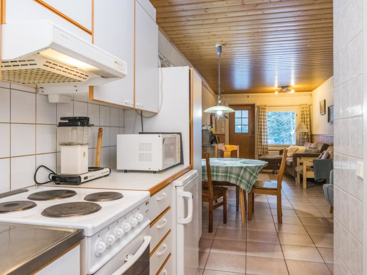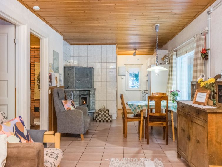 Wooden cabin 1992, living room/kitchen, 2 bedrooms with 2 beds in each, washroom, sauna, open veranda. Car shelter. Traditional cottage on a sunny plot. Bedlinen and towels are included in the price.