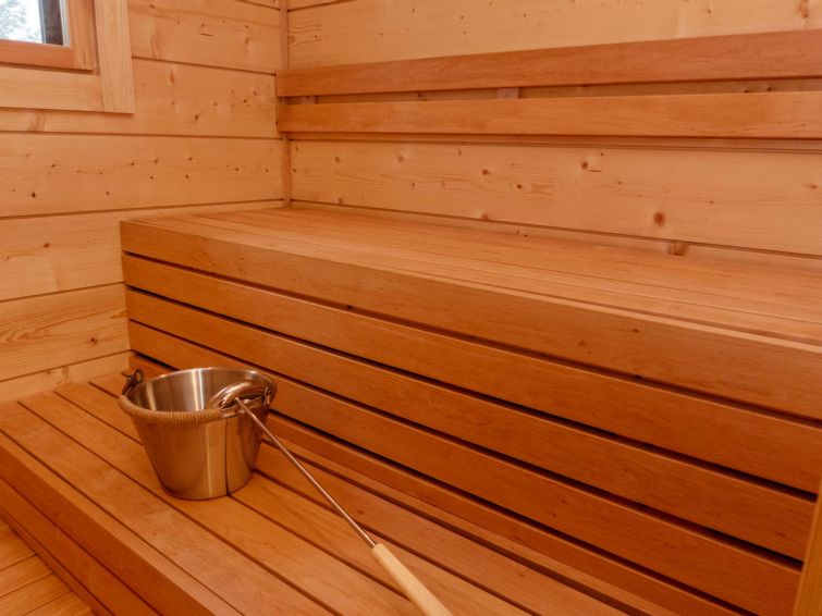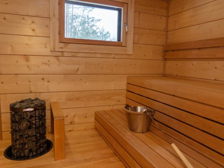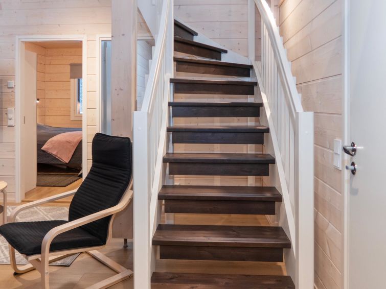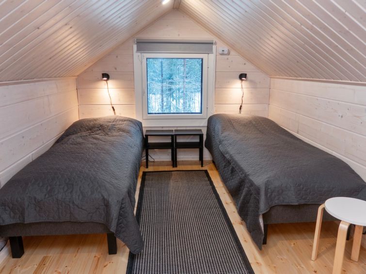 Bright single cabin in a quiet location, completed in 2023. The cabin has 2 bedrooms, both have a double bed. There are also 2 beds in the loft, so the destination is suitable for 6 people for an active holiday. On the ground floor, a fully equipped living room/kitchen and an electric sauna. Additional information: Bed linen and final cleaning are included in the price. Wi-fi = 5G router.
