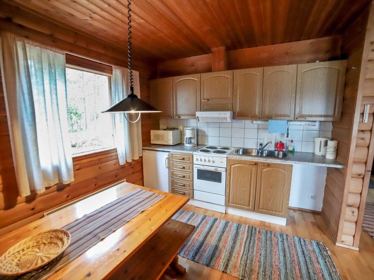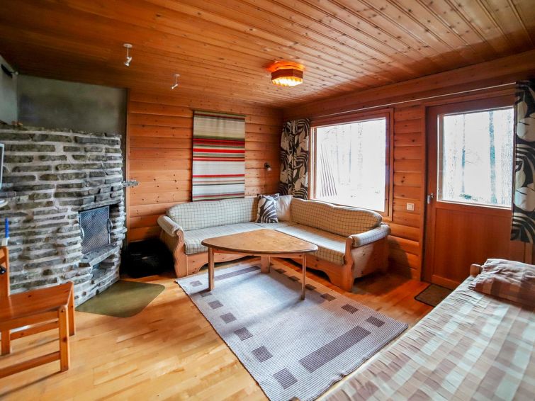 50 km to the north from Kuusamo, Ruka 25 km, lake Ala-Juumajärvi 20 m. Log-built semidetached house, built in 1997, living room/kitchen, wood-heated sauna.