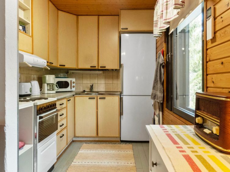 There is a cooking hut at your disposal in the yard. Please note that the cabin rent includes firewood for the hut and the fireplace, one for both. Additional firewood can be purchased at a local store.