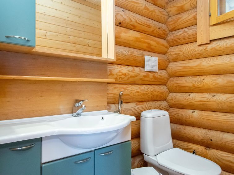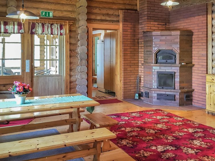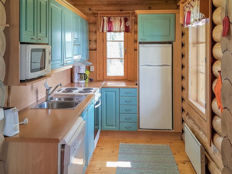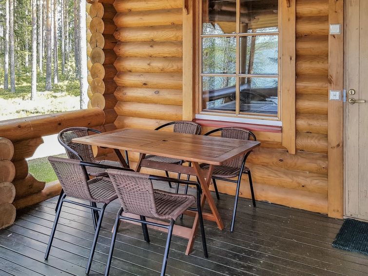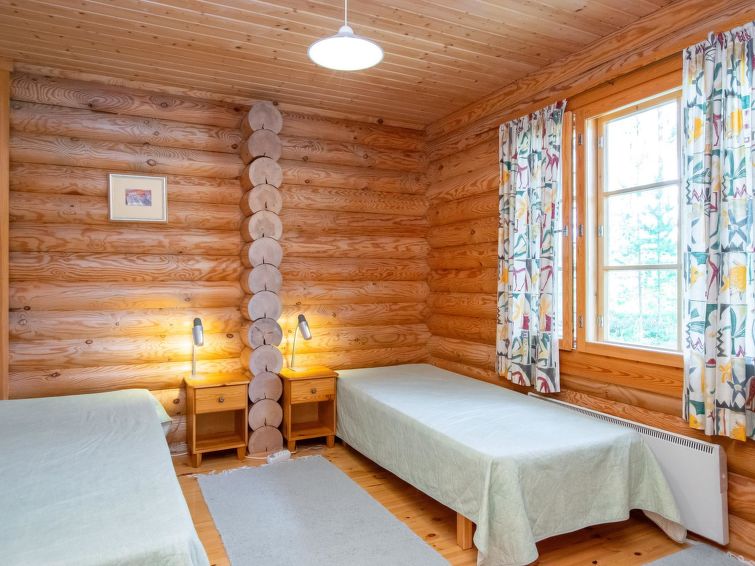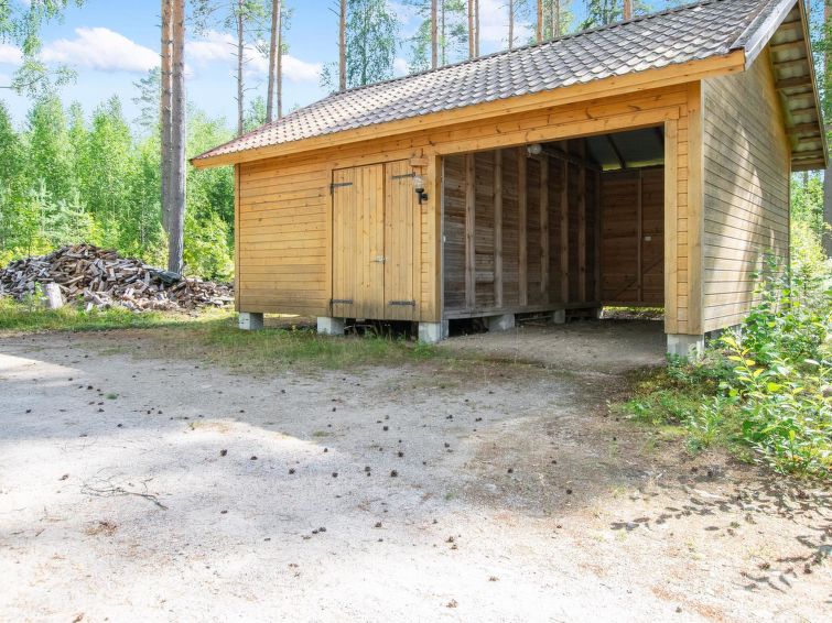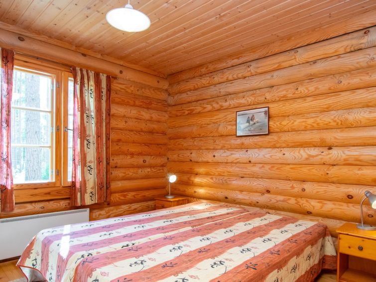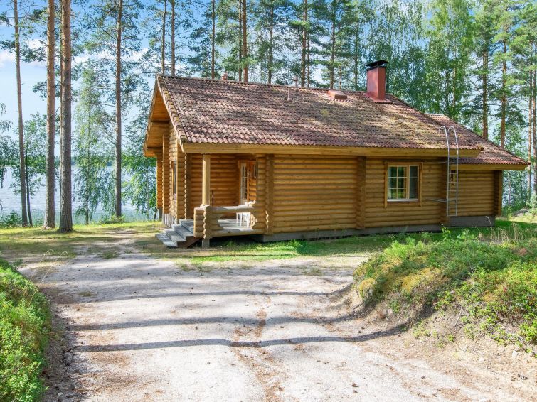 45 km west of Savonlinna, Halmejärvi 20 m (length 5 km, width 1 km); shallow, hard sanded bottom, own boat. Log building 2000, kitchen, living room with convertible sofa, 2 bedrooms 2 beds in each, dressing room, washroom, sauna, 2 x open porch. Hasanmäki downhill ski centre 35 km, horse riding 15 km. Outboard motor for hire. Owner gives instructions where to rent canoes.