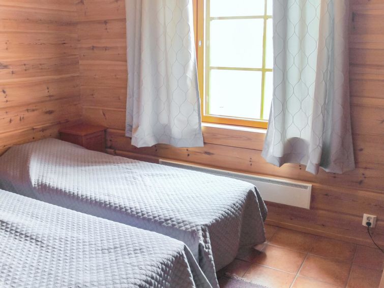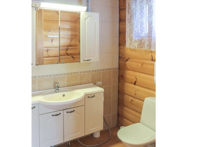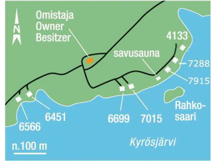 50 km north-west of Tampere, L. Kyrösjärvi 30 m (length 30 km, width 5 km), shallow, sanded clay bottom, own boat and pier. Log building 2003, living room/ kitchen, downstairs 2 bedrooms 2 beds in each, upstairs 1 bedroom 2 beds, sauna, washroom, dressing room, 2 open porches.
