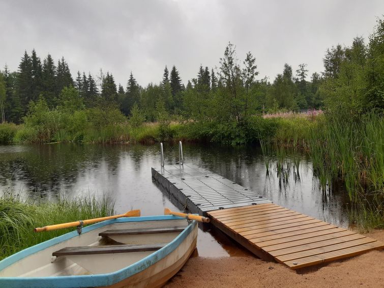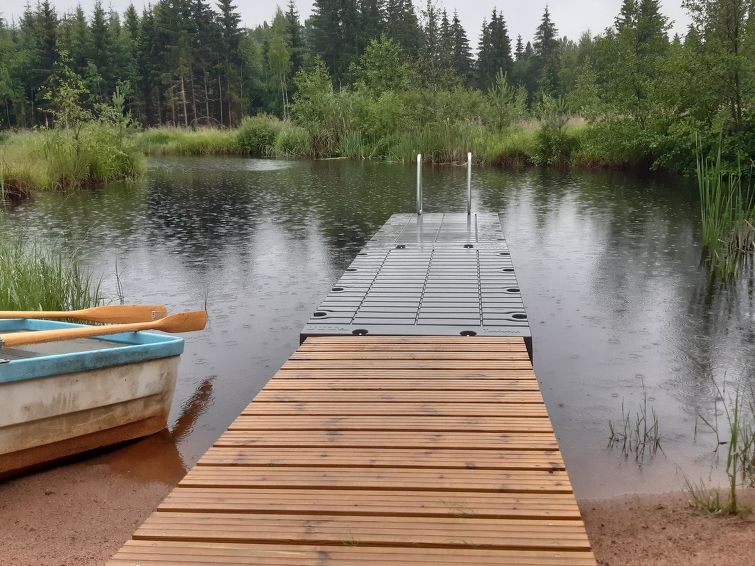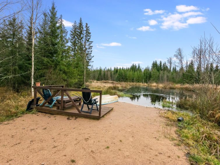 Children´s playground in shared use 150 m away. Small cottage and a separate sauna house in a quiet location on a artificial pond. The water to the pond comes from the nearby stream (cold water).