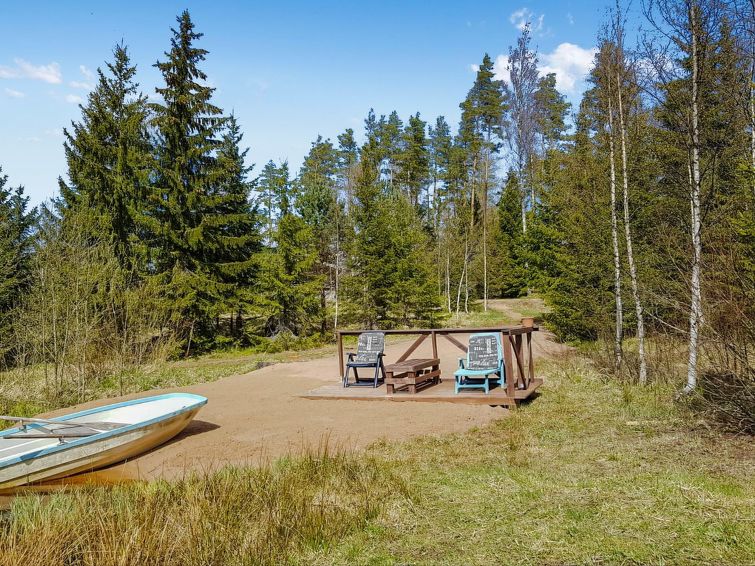 35 km south of Salo, Metsälampi pond 100 m (length 50m, width 20m), low hard gently sloping sandy bottom, own boat, no jetty. Yard area is largely in natural state, and wooded. From the cottage to sauna and from sauna to the beach path.