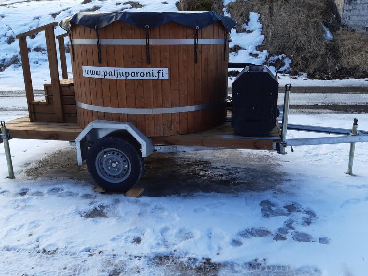 Movable hot tub, for 6-8 persons, bookable from the owner. Availability must be inquired in advance (hot tub is rented between two cottages).