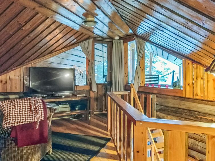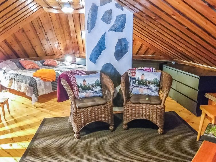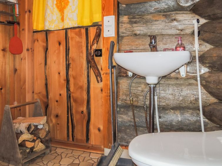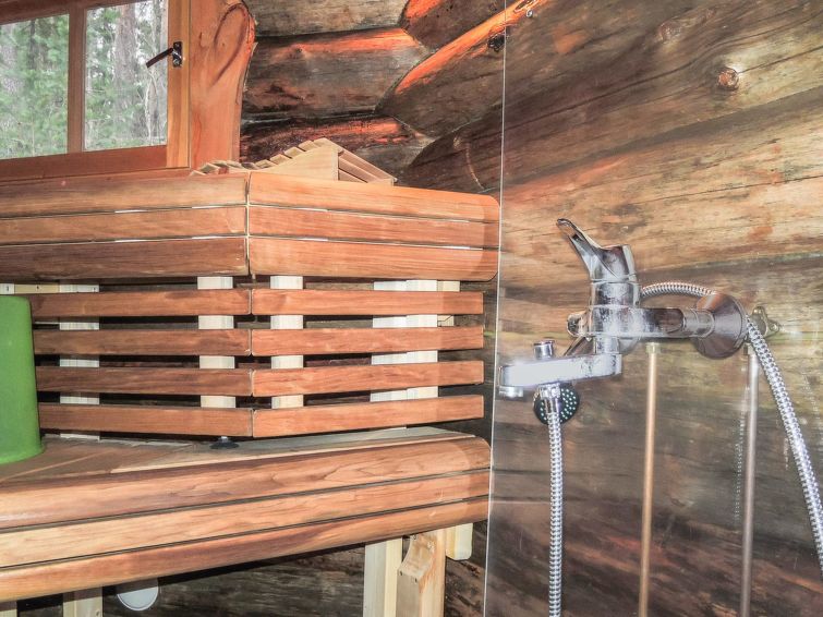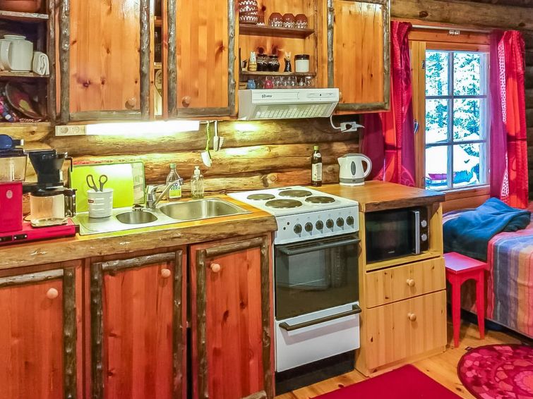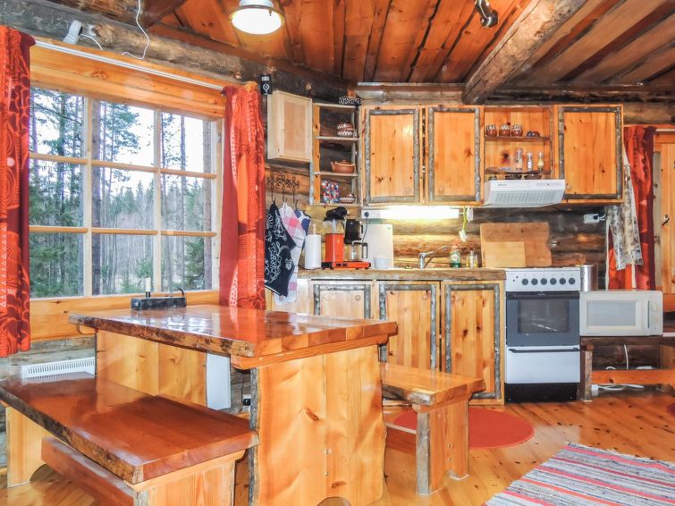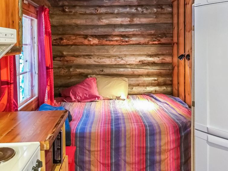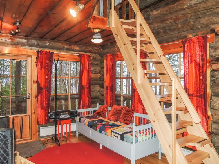 Log cottage built in 2002. Living room/kitchen, alcove (double bed 140 cm), wood-heated sauna (shower in the sauna), dressing room and loft (double bed 200 cm). Veranda. In Summer sleeping outbuilding for 2 persons available. Charming log cottage in a hillside plot with beautiful view to the lake. Roofed grill hut and electric hook-up for car. Good possibilities for grilling and fishing. Fishing equipment available. The owner can bring a baby cot and a high chair to the cottage if needed. Underfloor heating in dressing room and in sauna. Bed linen are included in the price. The final cleanig cost will be added to the price if client has a pet with him. Distance to Pärnävaara's cross country ski center is 45 kilometres.