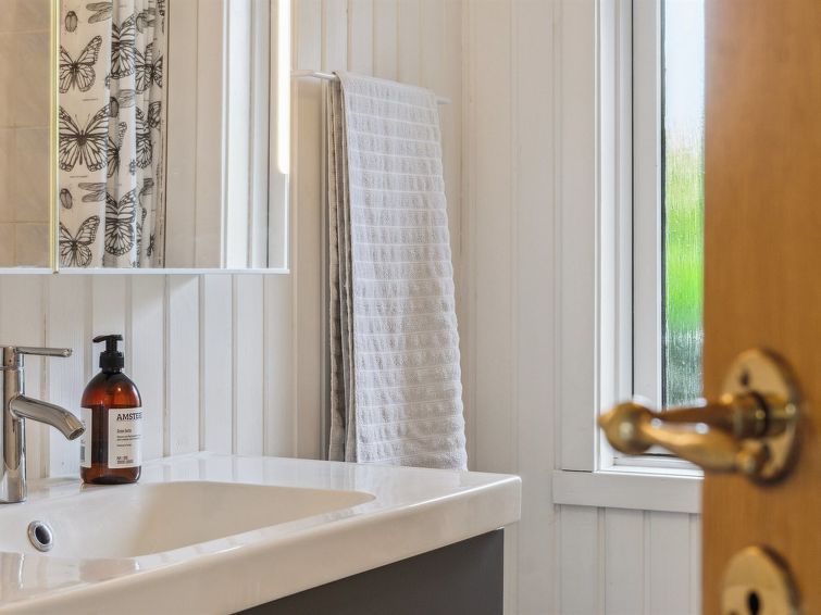 "Margit" - 10m from the sea in Lolland, Falster and Mon", 3 rom hus 92 m2. Passer for 6 voksne. Stue med, TV. 1 rom med, 1 dobbeltseng. 1 rom med, 1 dobbeltseng. 1 rom med, 1 dobbeltseng. Kjøkken (4 kokeplater, stekeovn, oppvaskmaskin, frys). 2 dusjer/WC. Terrasse 14 m2, dekt. Fasiliteter: høy barnestol. Internett (trådløs LAN [WLAN]). Vennligst merk: røykfri bolig.