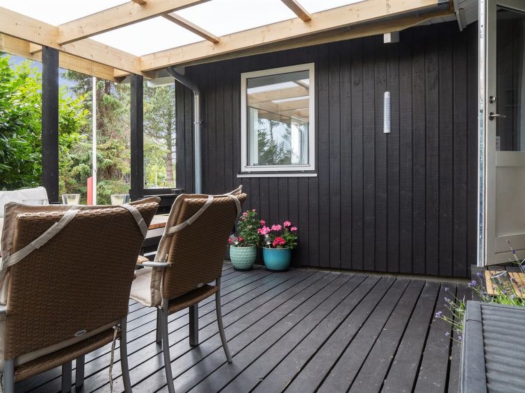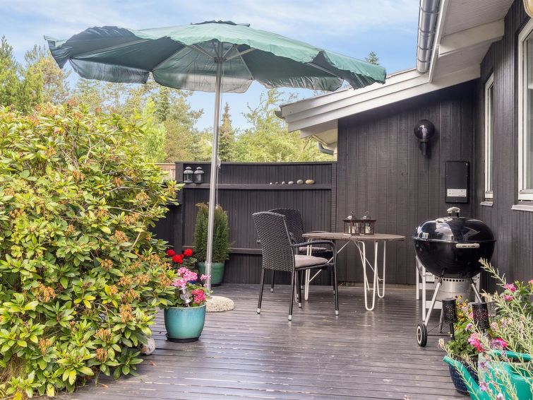 Enmannsbolig, bygget i 1968. 10 m fra sjøen. Privat: tomt 1'021 m2, velholdt hage. Terrasse (20 m2), grill, lekeplass (huske). I huset: vaskemaskin. Parkering ved hbrukt. Daglivarehandel 5 km. Eieren godtar ikke noen ungdomsgrupper.