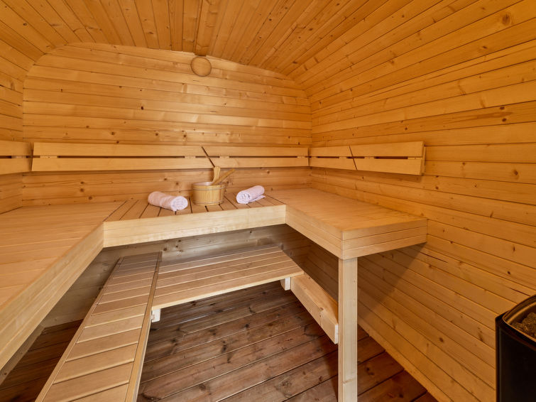11 rom hus på 2 etasjer. 1 rom med, 1 sovesoffa, 1 dobbeltseng, dusj/WC og satelit-TV. 2 rom, hvert rom med, 1 dobbeltseng, dusj/WC og satelit-TV. Spisestue med, spisebord og satelit-TV. Stue med, 1 dobbel sovesoffa, spisebord, kjøkkenhjørne, dusj/WC og satelit-TV. 1 rom med, 1 dobbeltseng. Kjøkkenkrok (oppvaskmaskin, 4 keramiske kokeplater, vannkoker, frys). øverste etasje: 1 rom med, 1 dobbeltseng, kjøkkenhjørne, dusj/WC og satelit-TV. 1 rom med 2 senger. 1 rom med, 1 dobbeltseng, kjøkkenhjørne, dusj/WC og satelit-TV. Utgang til balkongen. 1 rom med 2 senger. Stue med, 1 dobbel sovesoffa, spisebord, kjøkkenhjørne, bad/dusj/WC og satelit-TV. 1 rom med, 1 dobbeltseng. Galleri med, 3 sovemuligheter. Balkong. Terrassemøbler. Fasiliteter: Internett (trådløs LAN [WLAN], gratis). Vennligst merk: velegnet for familier. Røykfritt hus. Max 1 lite kjæledyr / liten hund tillatt.