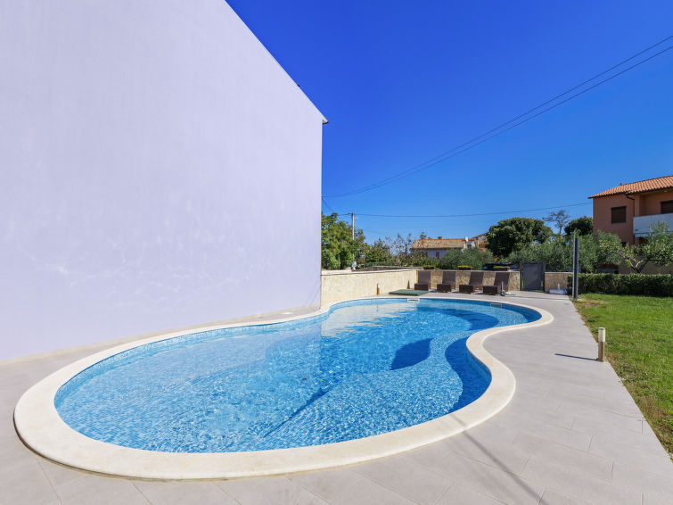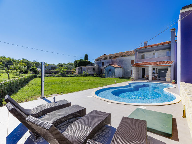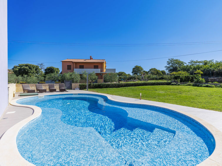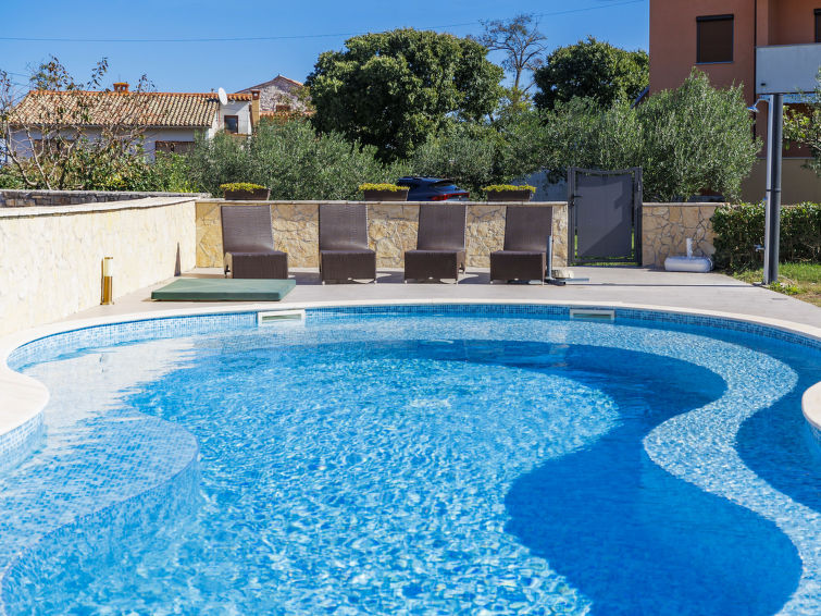 Krnica 22 km fra Pula: Fin rekkehus "Mario 2", med 2 etasjer. I det lille tettstedet Bratulići 5 km fra sentrum av Krnica, i en roligt, solrikt posisjon, 7 km fra sjøen. Privat: tomt 200 m2 (inngjerdet), svømmebasseng (50 m2, dybde 140 cm, Sesongåpent: 02.Mai. - 26.Sep.) med innebygde trapper. Formet basseng. Hagemøbler, grill. I huset: internetilkobbling, sentralvarme, vaskemaskin. Overdekket, parkering (for 2 biler) ved hbrukt på tomten. Butikk 2 km, restaurant 100 m, småstenstrand 10 km, strand ved klipper 7 km. Tennis 10 km, rideskole 3 km.