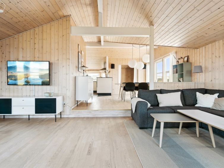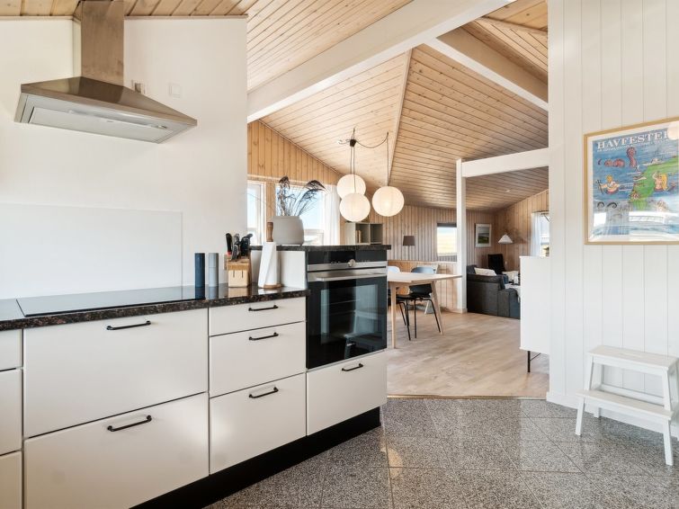 "Marissa" - 200m from the sea in NW Jutland", 4 rom hus 110 m2. Passer for 6 voksne + 1 barn. Stue med, TV, radio og CD-spiller. 1 rom med, 1 dobbeltseng. 1 rom med 2 senger. 1 rom med, 1 dobbeltseng. Kjøkken (stekeovn, oppvaskmaskin, 4 induksjonskomfyr, mikrobølgeovn, frys). Dusj/WC. Fasiliteter: høy barnestol barneseng (ekstra). Internett (trådløs LAN [WLAN]). Vennligst merk: røykfri bolig.