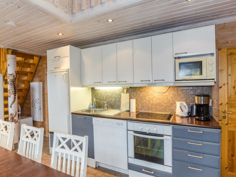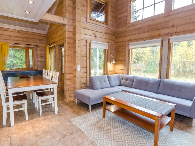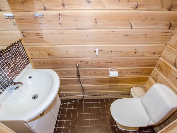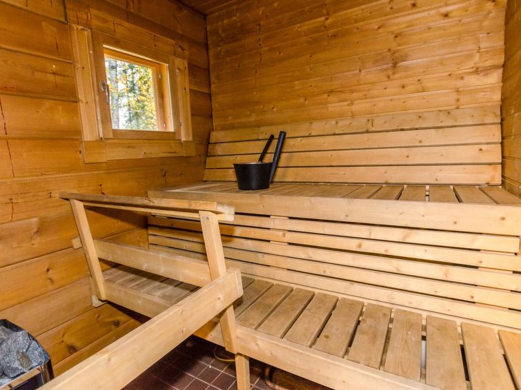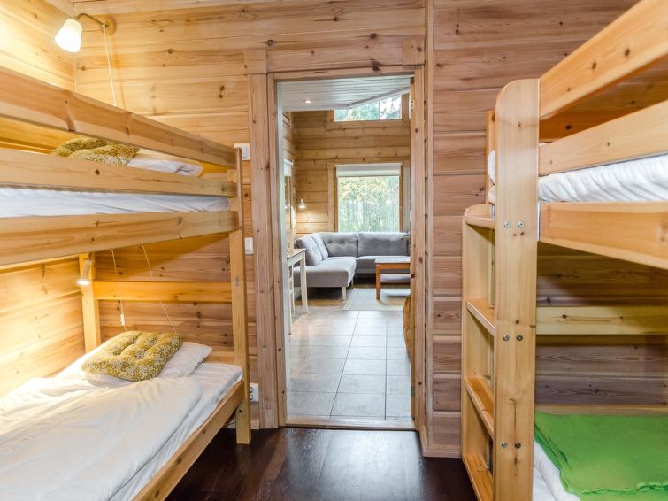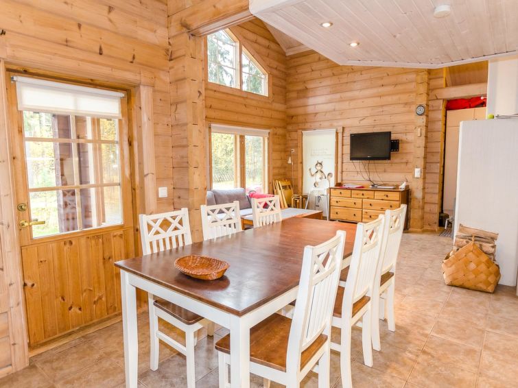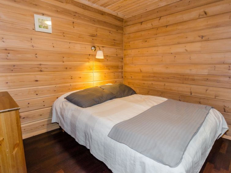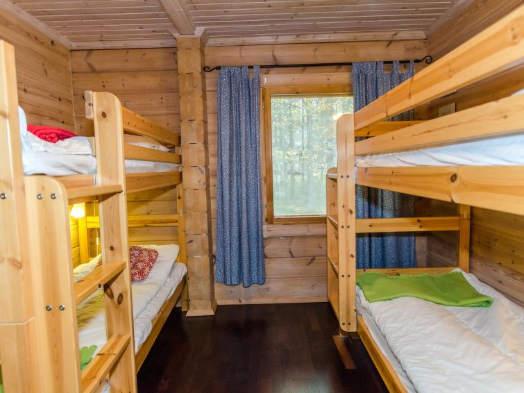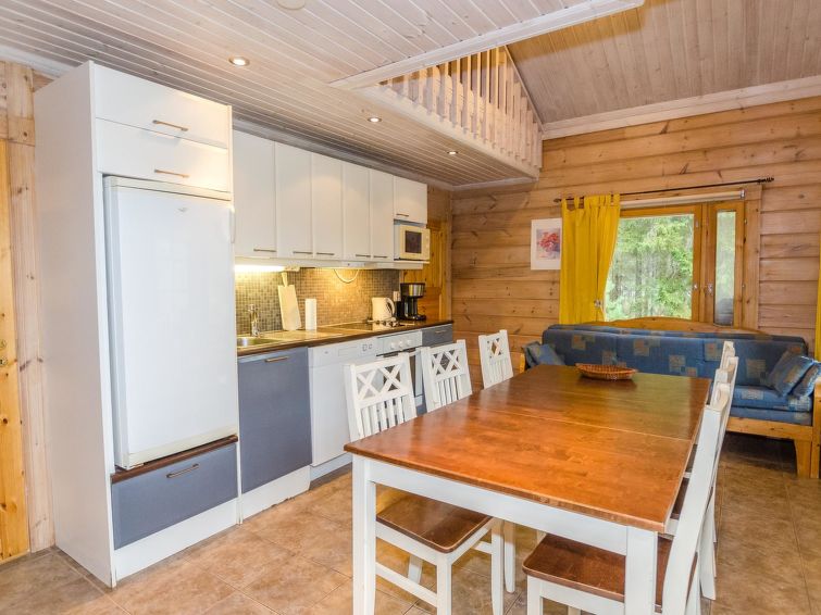 72 km north of Joensuu, Lake Pielinen 150 m (871,2 km²), common beach with shallow sandy bottom. Kayak. Log cottage 2007, kitchen-living room with convertible sofa, bedroom with one bed, bedroom with 2 bunk beds, upstairs one bed room (15 m²) with 2 beds and 2 mattresses, washroom, sauna (elec. stove), terrace. High standard log cottage by the Lake Pielinen in Purnuniemi cottage area. The hiking trails of Koli National Park near by. Kayak is a guests free use. The cottage is suitable for downhill and cross-country skiers; Ukko-Koli slopes 3,5 km. Illuminated skiing track 400 m. Common covered grill with neighbour cottage Victoria.