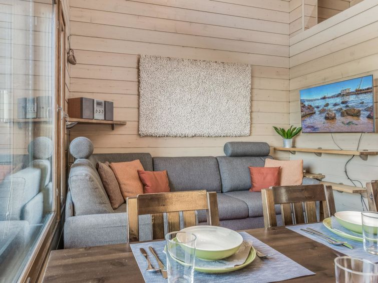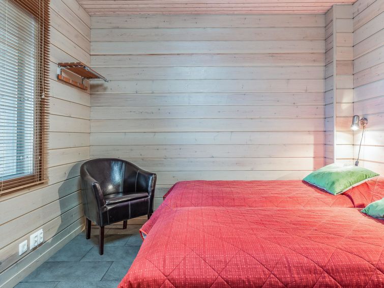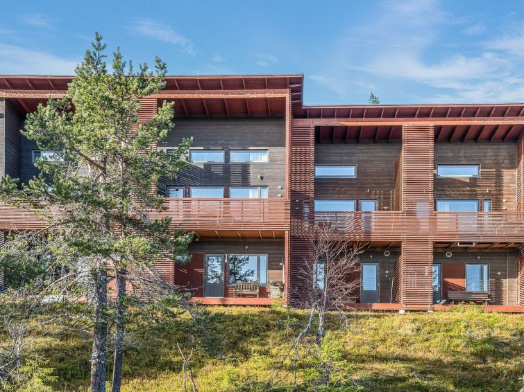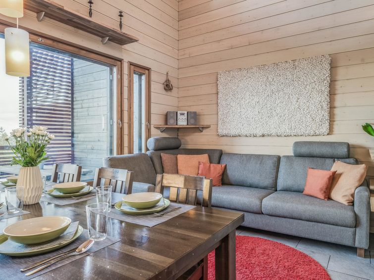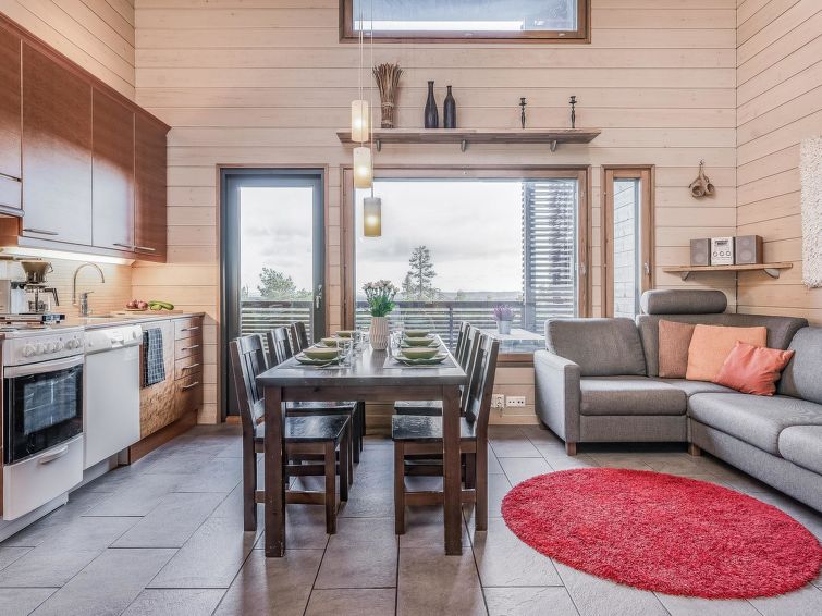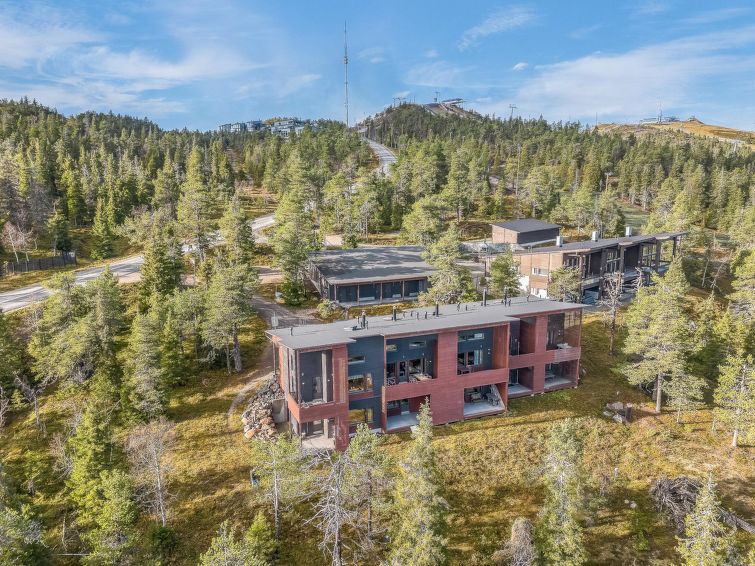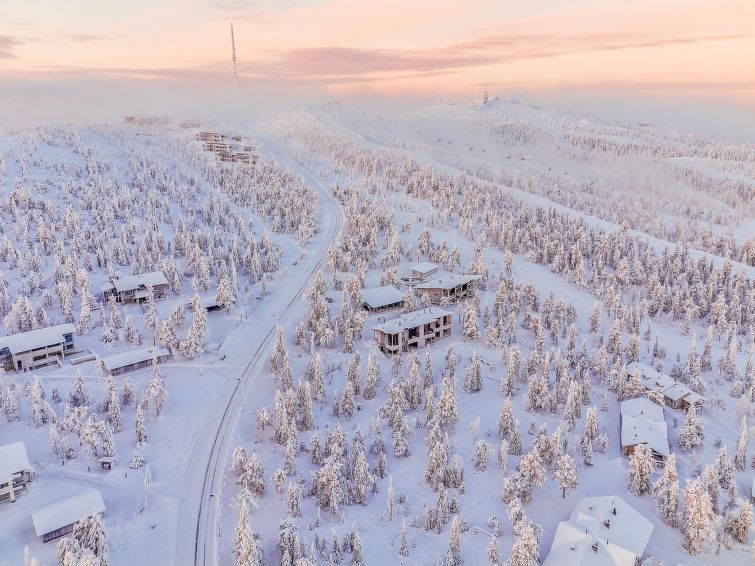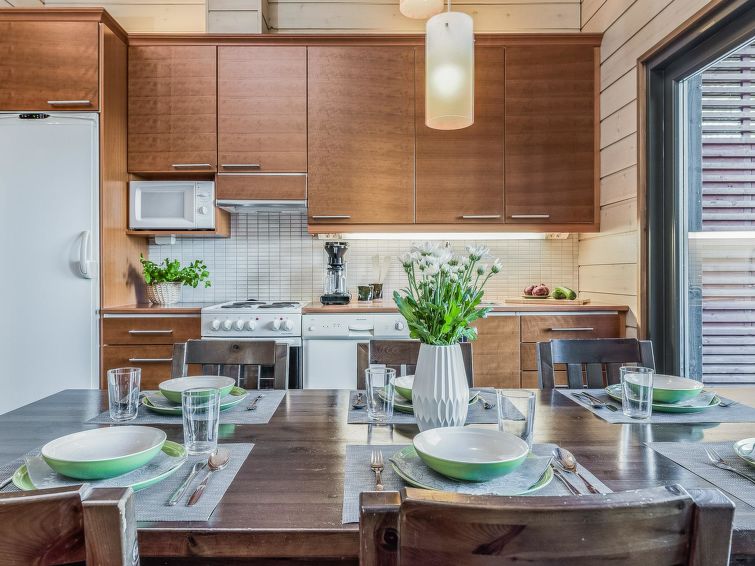 There is combined kitchen/living room. TV room and electric sauna are downstairs. Rowhouse situated in cottage area near Mastonrinne slopes, on Juhannuskalliontie road.