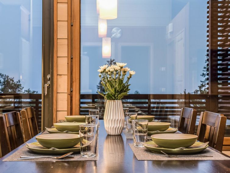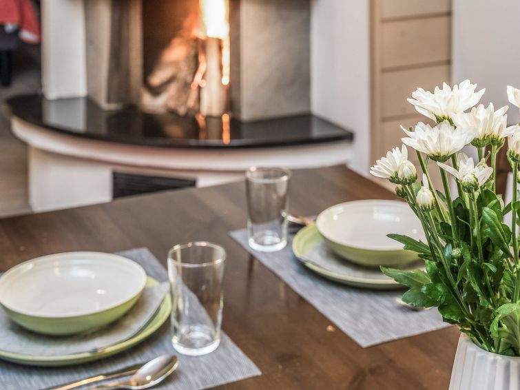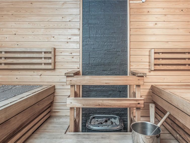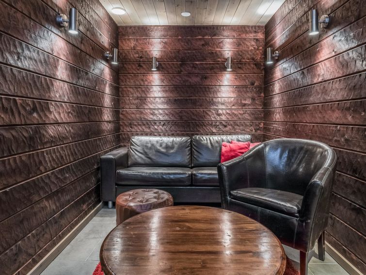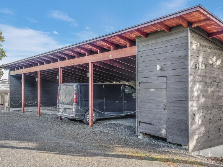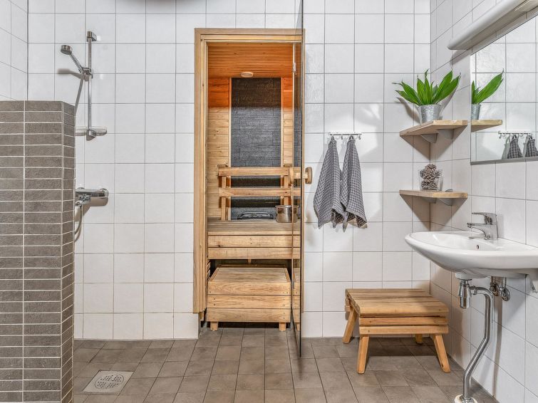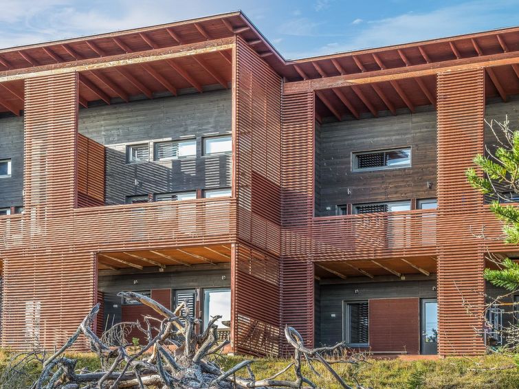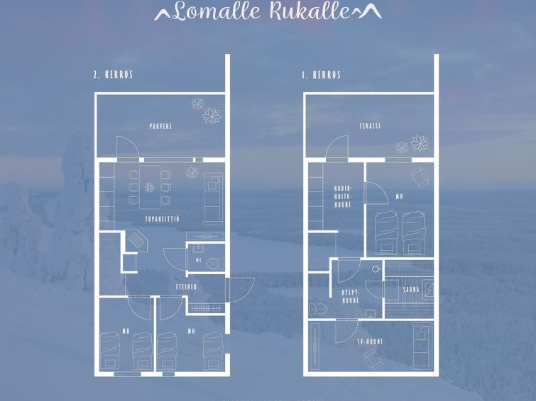 There is combined kitchen/living room. TV room and electric sauna are downstairs. Rowhouse situated in cottage area near Mastonrinne slopes, on Juhannuskalliontie road.