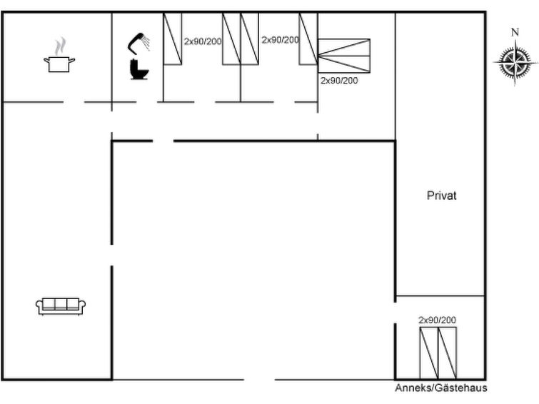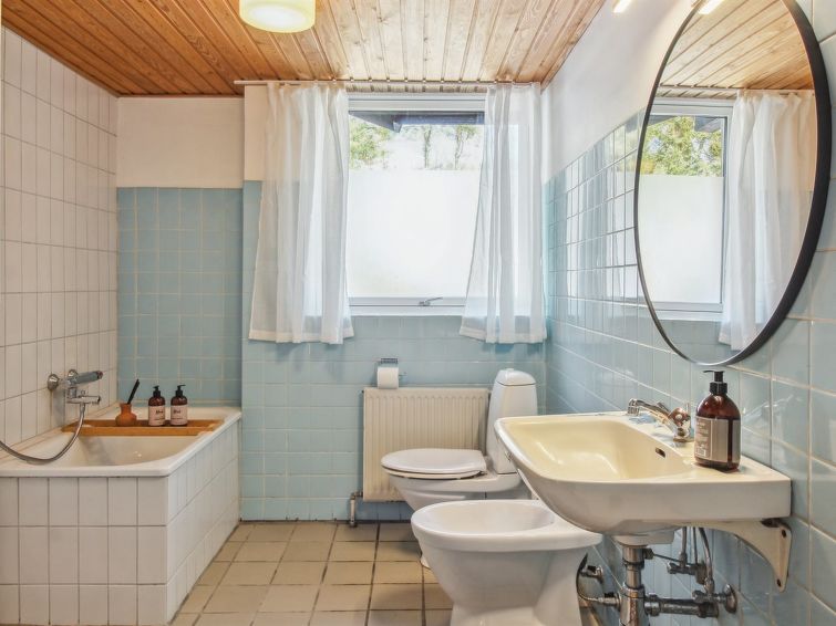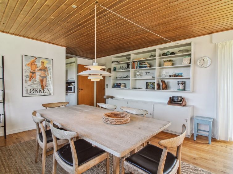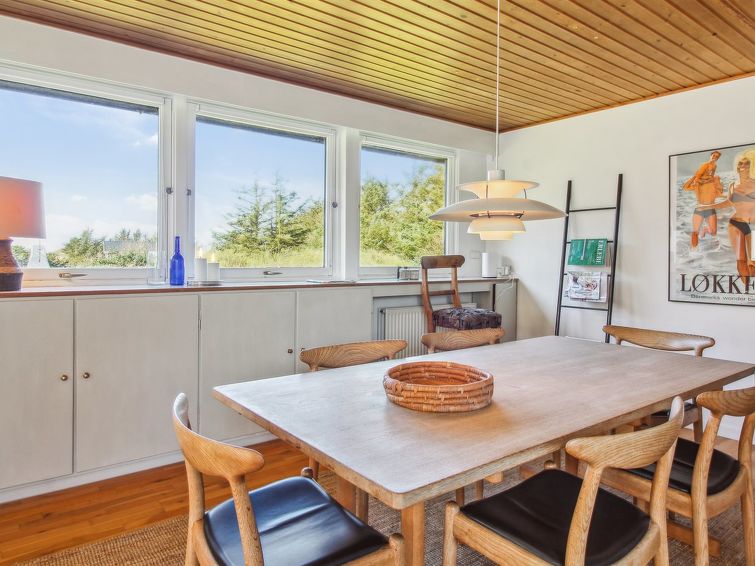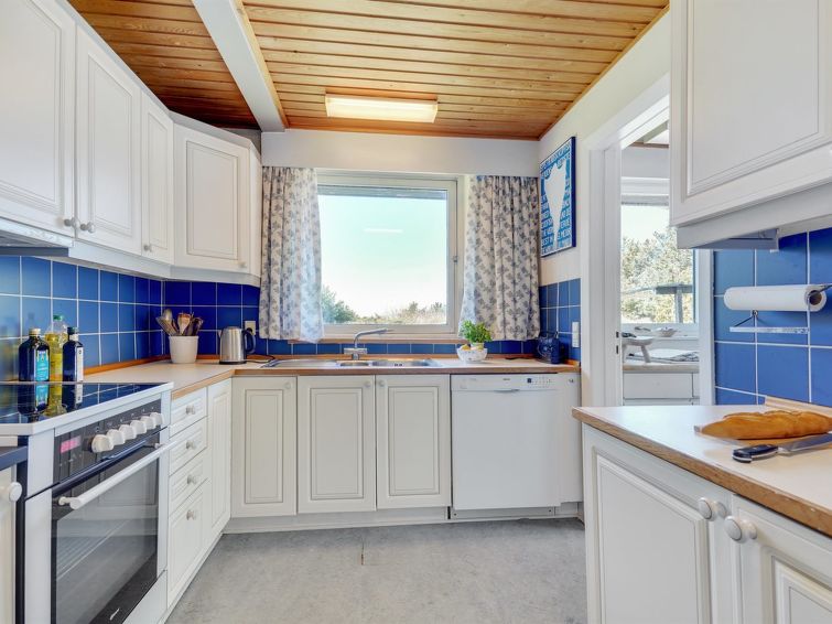 "Matilda" - 375m from the sea in NW Jutland", 3 rom hus 121 m2. Passer for 6 voksne + 1 barn. Stue med, TV. 1 rom med, 1 dobbeltseng. 1 rom med 2 senger. 1 rom med 2 senger. Kjøkken (stekeovn, oppvaskmaskin, 4 keramiske kokeplater, mikrobølgeovn, frys). Dusj/WC. Fasiliteter: barneseng (ekstra). Internett (trådløs LAN [WLAN]). Vennligst merk: røykfri bolig. Max kjæledyr / hund tillatt 1 kjæledyr / hund tillatt.