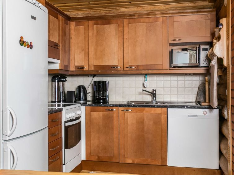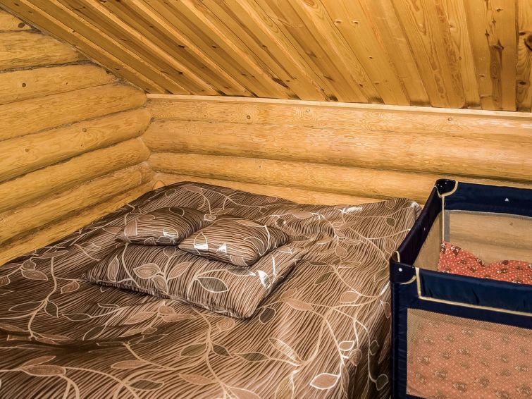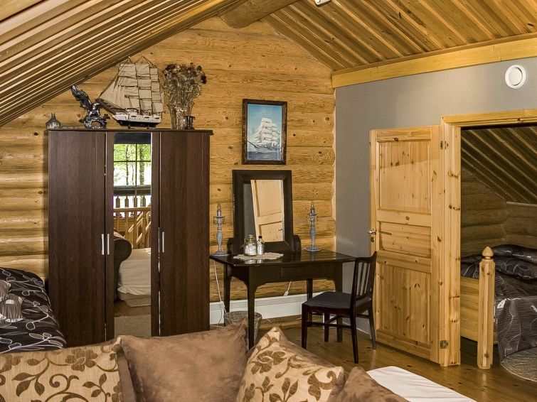 Log cottage 2000, renovated 2009, living room/kitchen. Upstairs sleeping alcove (5 m², sloping ceiling, max height 2,2 m, with no window) double bed. Upstairs sleeping alcove (with a curtain) double bed and sleeping alcove (without a curtain) 2 beds, sauna, shower cubicle, dressing room, WC, balcony, terrace.
