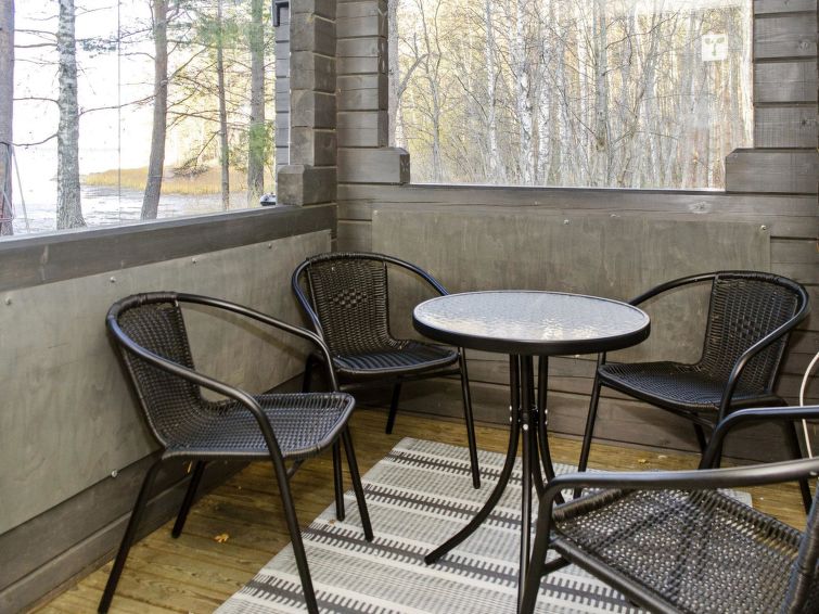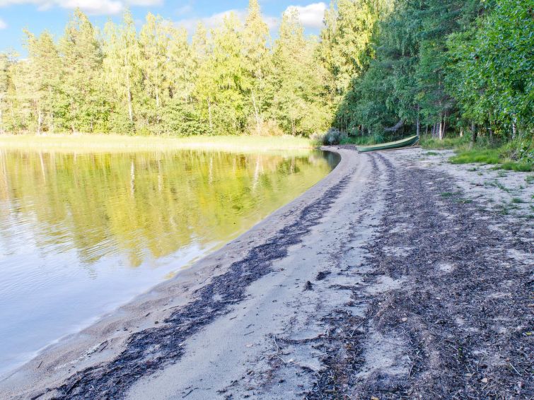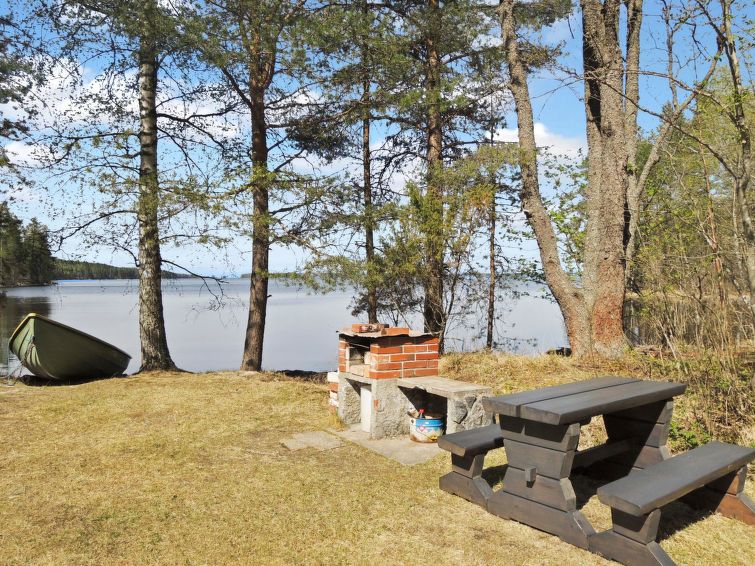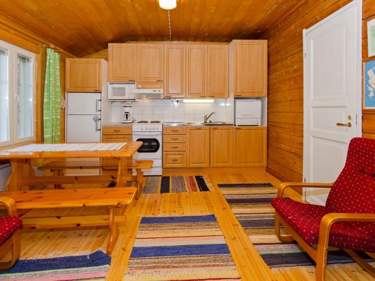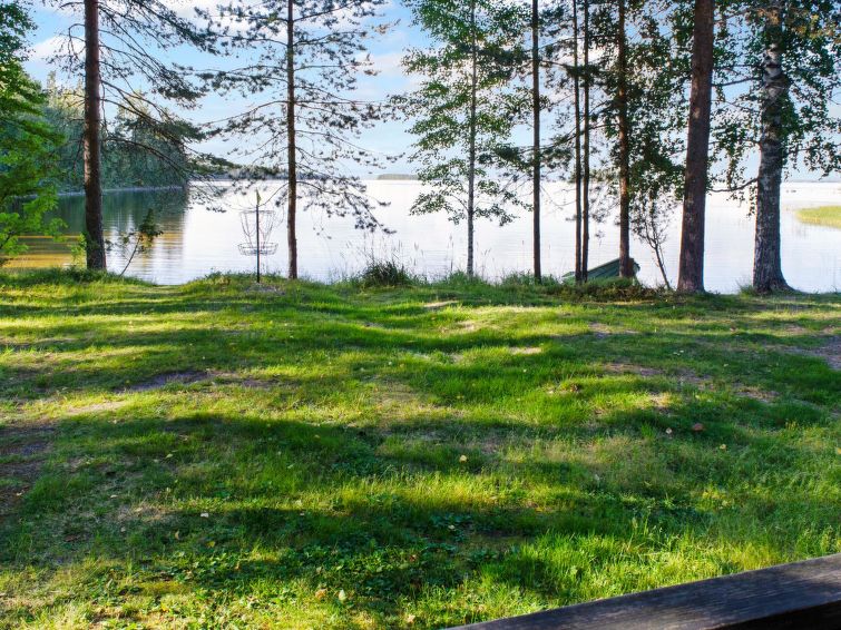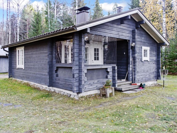 86 km north of Joensuu, Lake Pielinen 20 m (871,2 km²), shallow sandy bottom, own boat and beach. Log cottage 1992, renovated 2005, bedroom with 2 beds, kitchen-living room with convertible sofa, washroom, sauna (wood heated stove), terrace. Separate outdoor building with 2 beds and baby crib, only for summer use. The kitchen equipment includes kettle and toaster. Yard games: cottage darts, Mölkky and frisbee basket are available.