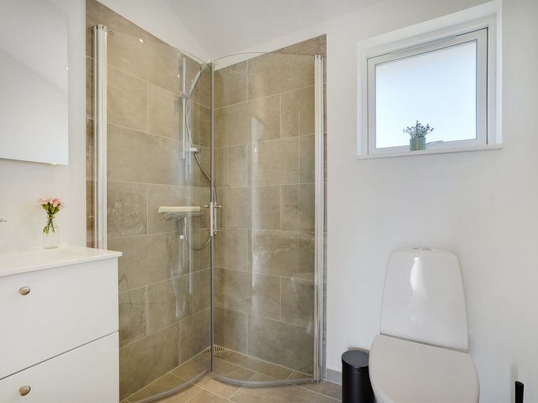Enmannsbolig, bygget i 2021. 350 m fra sjøen. Privat: uberørt tomt 1'200 m2. Utendørs dusj, terrasse (100 m2), grill, lekeplass. I huset: badstu, vaskemaskin, tørketrommel. Parkering ved hbrukt. Daglivarehandel 350 m. Eieren godtar ikke noen ungdomsgrupper.