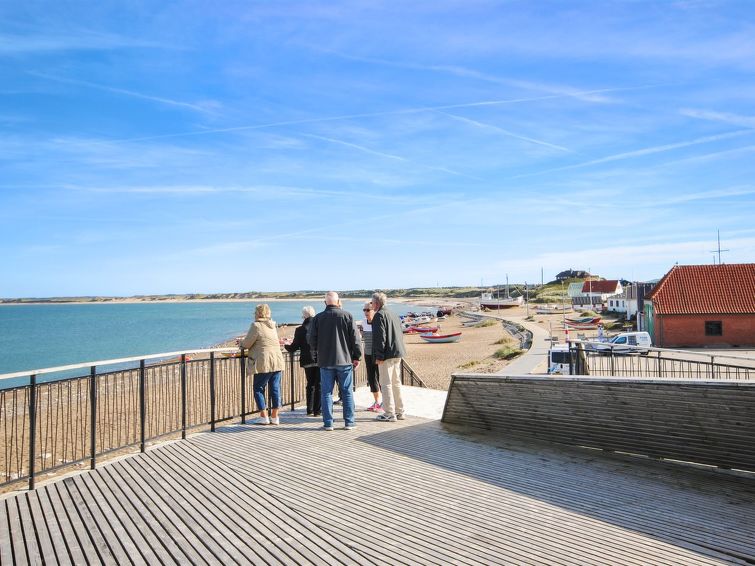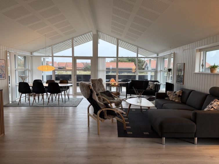 "Mauri" - 350m from the sea in NW Jutland", 3 rom hus 106 m2. Passer for 6 voksne. Stue med, TV, CD-spiller og stereoanlegg. 1 rom med, 1 dobbeltseng. 1 rom med, 1 dobbeltseng. 1 rom med, 1 dobbeltseng. Kjøkken (stekeovn, oppvaskmaskin, 4 keramiske kokeplater, mikrobølgeovn, frys). 2 dusjer/WC, boblebad. Terrasse 13 m2, dekt. Utsikt av havet. Fasiliteter: høy barnestol. Internett (trådløs LAN [WLAN]). Vennligst merk: røykfri bolig.