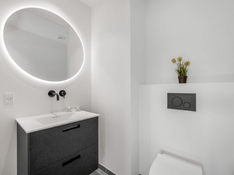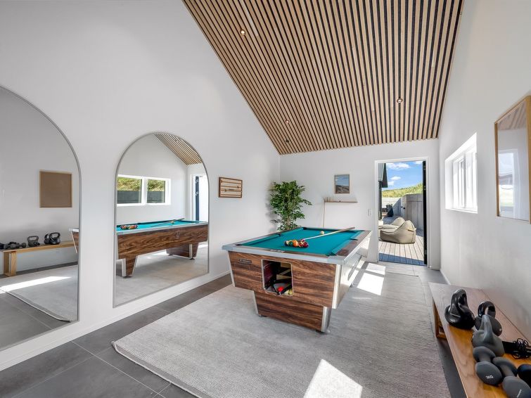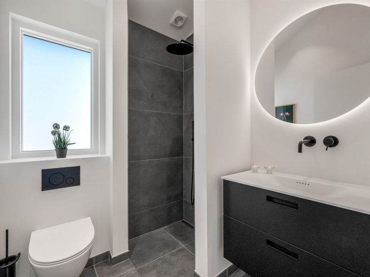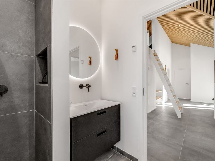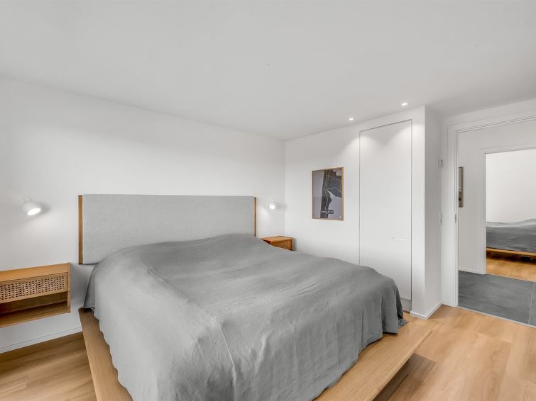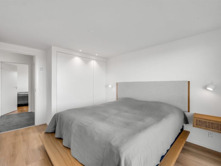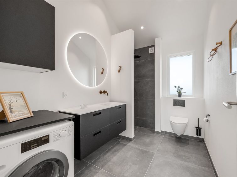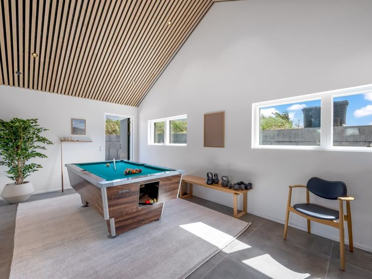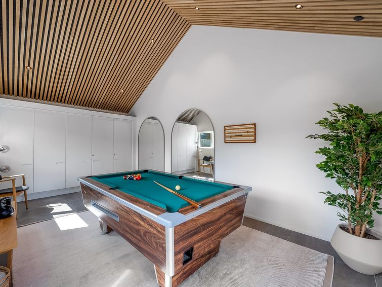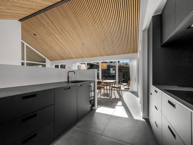 Enmannsbolig, bygget i 2023. 250 m fra sjøen. Privat: uberørt tomt 1'200 m2, innendørs pool. Utendørs dusj, terrasse (135 m2). I huset: vaskemaskin, tørketrommel. Parkering ved hbrukt. El-ladestasjon. Daglivarehandel 100 m. Golfbane 1 km. Eieren godtar ikke noen ungdomsgrupper.