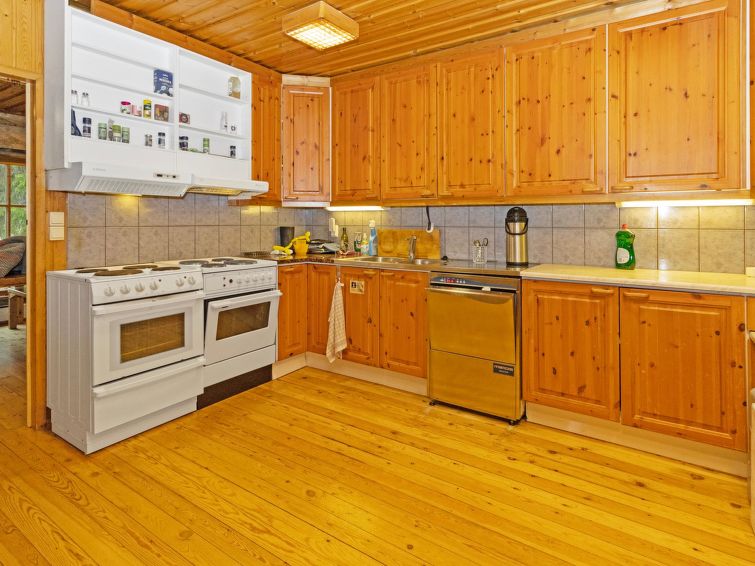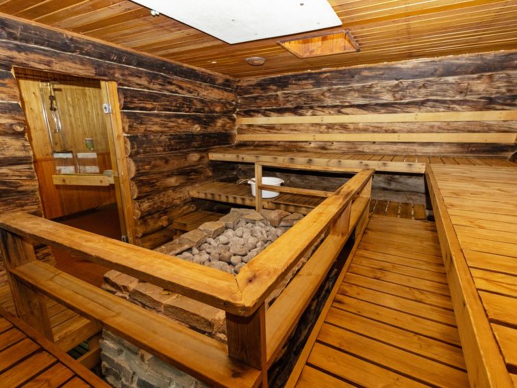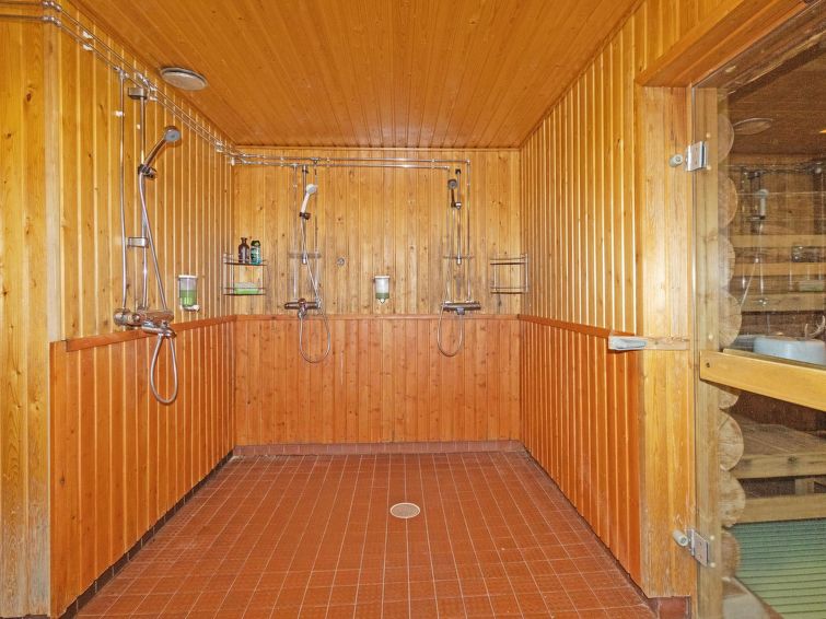 There are 8 double bedrooms, additionally convertible sofas in three of these bedrooms. Kitchen, separate dining room, big living room, 4 toilets with shower. Drying cabinet in the hall. In the kitchen there are 2 big refridgerators, freezer and dishwasher. Electric heated, spacious (80 m²) lake-side sauna in the separate building, 3 showers and toilet.