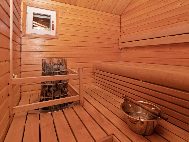 Log cottage, built in 1952, renovated in 2000, living room: 2 convertible beds + bunk bed. Combined kitchen/living room. Sauna.