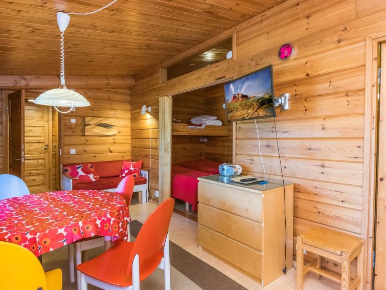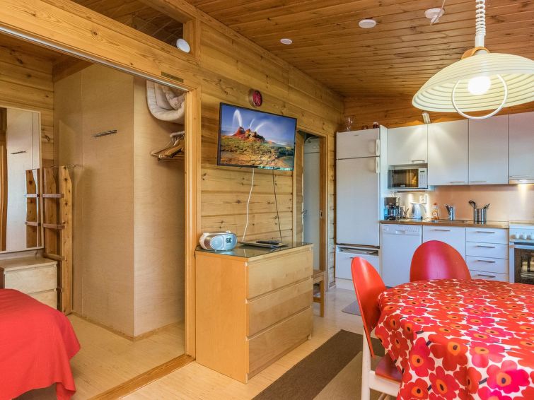 Apartment Metsänpirtti 2 is located in a semi-detached house in the centre of Saariselkä, offering a convenient location close to the area's services and activities.