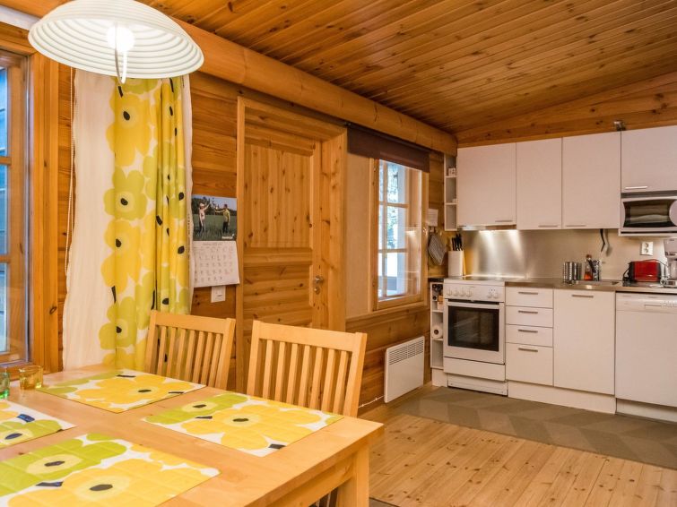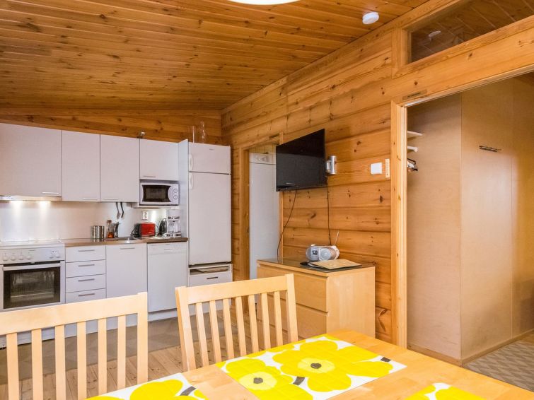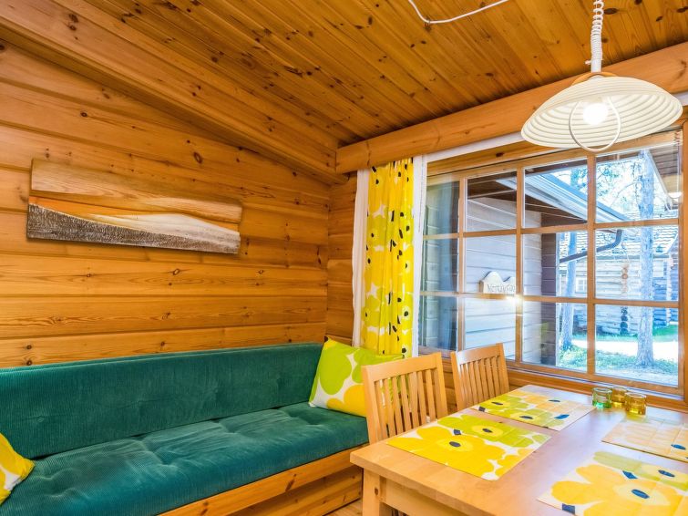 Apartment Metsänpirtti 4 is located in a semi-detached house in the centre of Saariselkä, offering a convenient location close to the area's services and activities.