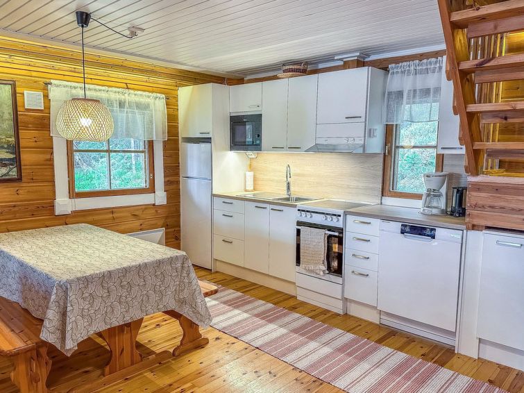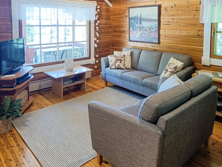 Log cabin 1997, living room/kitchen, bedroom with double bed, washing room - toilet, sauna, open veranda, terrace.