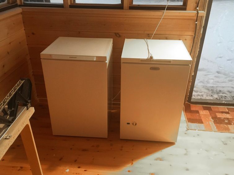 There is a chest freezer located in outdoor storeroom. Apartment is equipped with air source heat pump, which can also be used for cooling in summer.