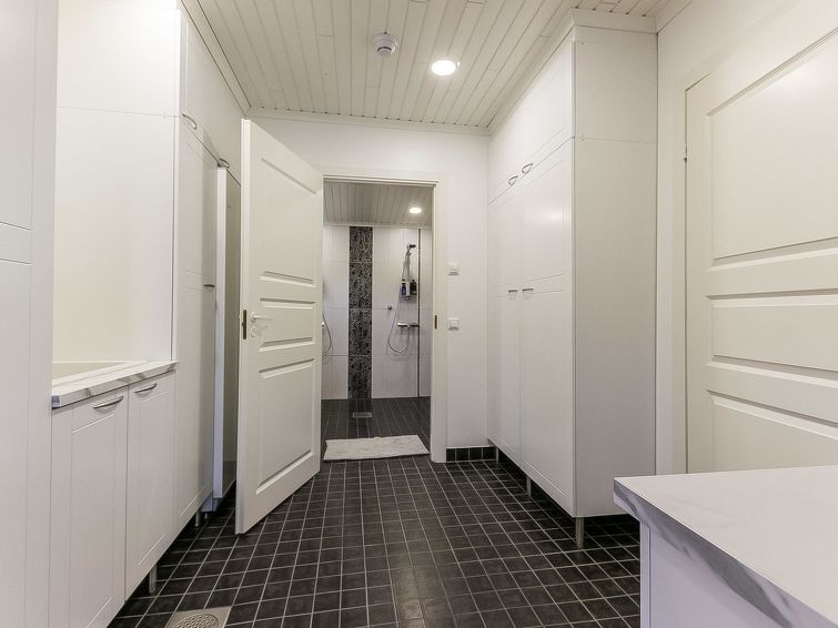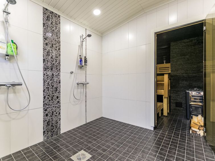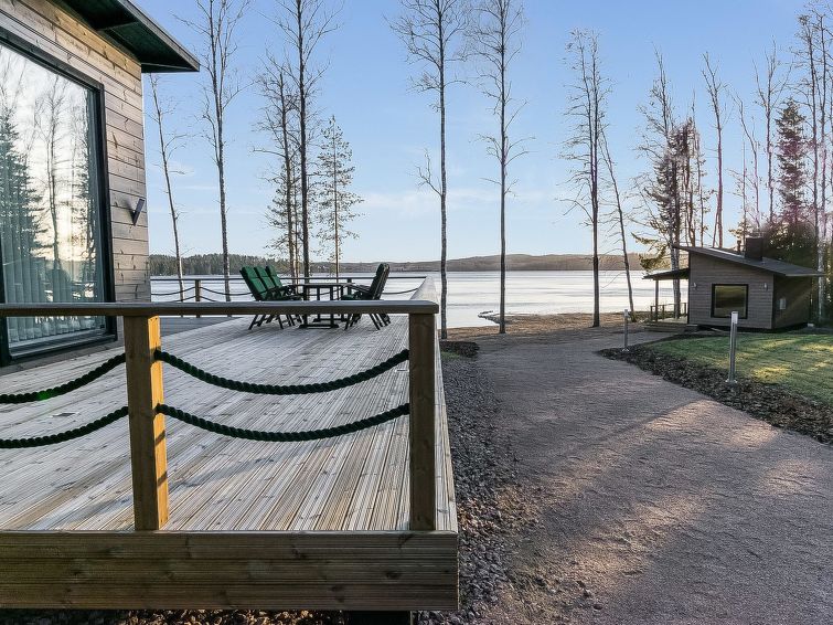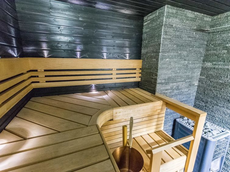 Separate lakeside sauna with wood-fired sauna stove, dressing room (heated) with sofa bed for two people. There is a cold water tap but no shower. Lakeside sauna is available all year round.