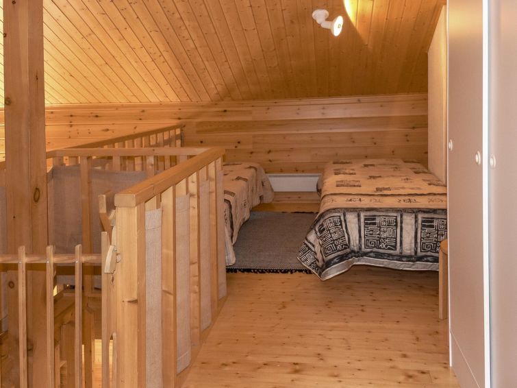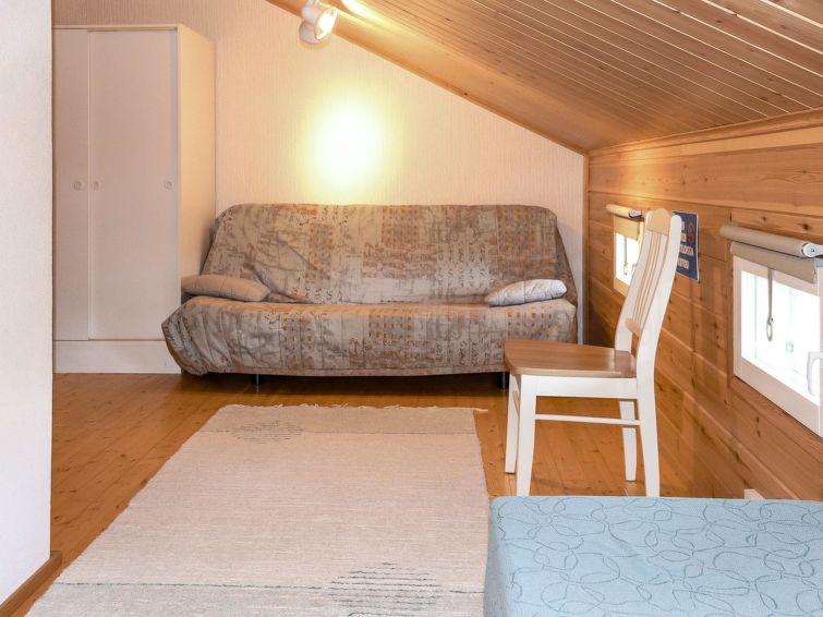 2 km / 1.24 mi from Paljakka ski centre. Distance to Lake Rakennusjärvi 500 m / 547 yds (1 km / 0.62 mi long and 200 m / 219 yds wide). Semi-detached chalet of massive logs, built in 1991. Living room with a sofa bed and a kitchenette, sauna with adjoining dressing room/WC, a 2x90 cm bed, 2x80 cm beds and sofa bed. Completely renovated 2018.