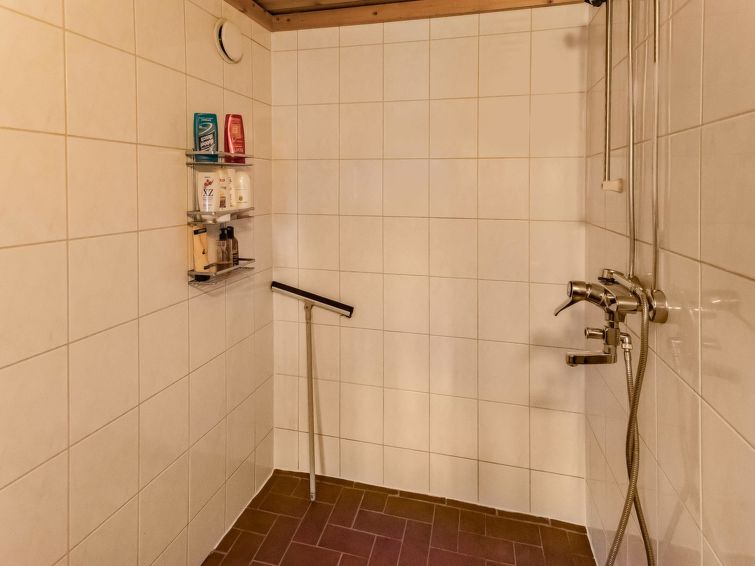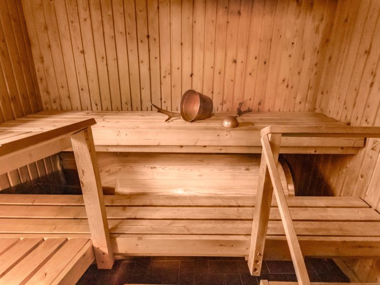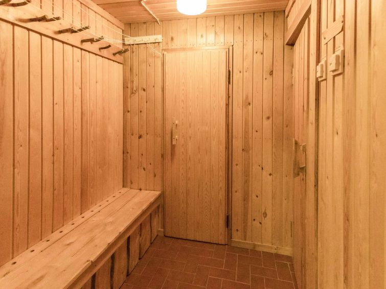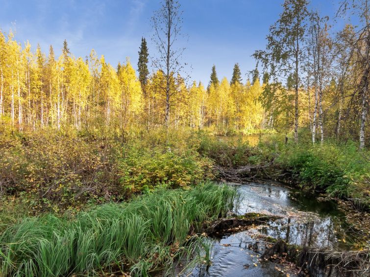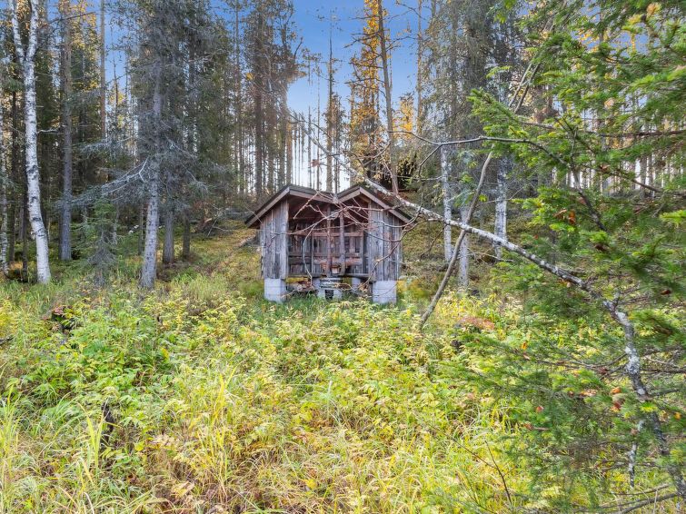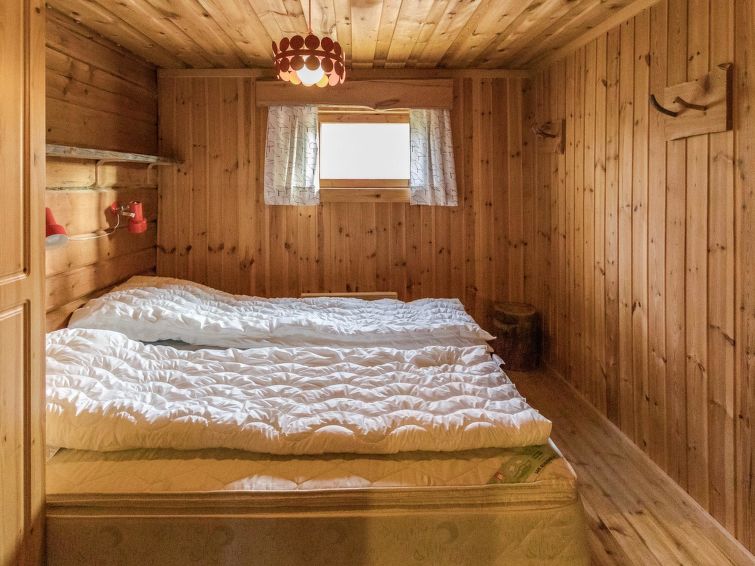 35 km north of Kolari, river Äkäsjoki 100 m, lake Äkäslompolo 6 km, swimming beach 8,5 km. Log cottage. Livingroom/kitchen, three bedrooms, two with 2 separate beds and one with two bunk beds. Electric sauna, shower, separate toilet. Porch. Lockable ski storage and ski maintenance room.