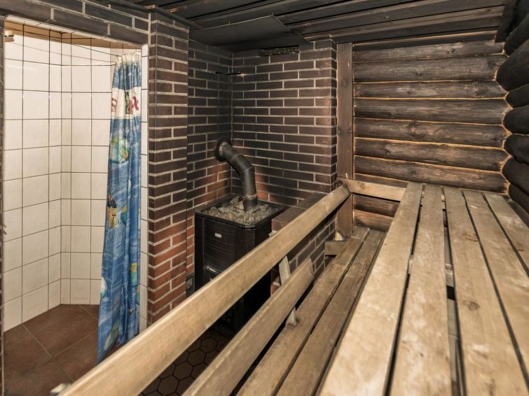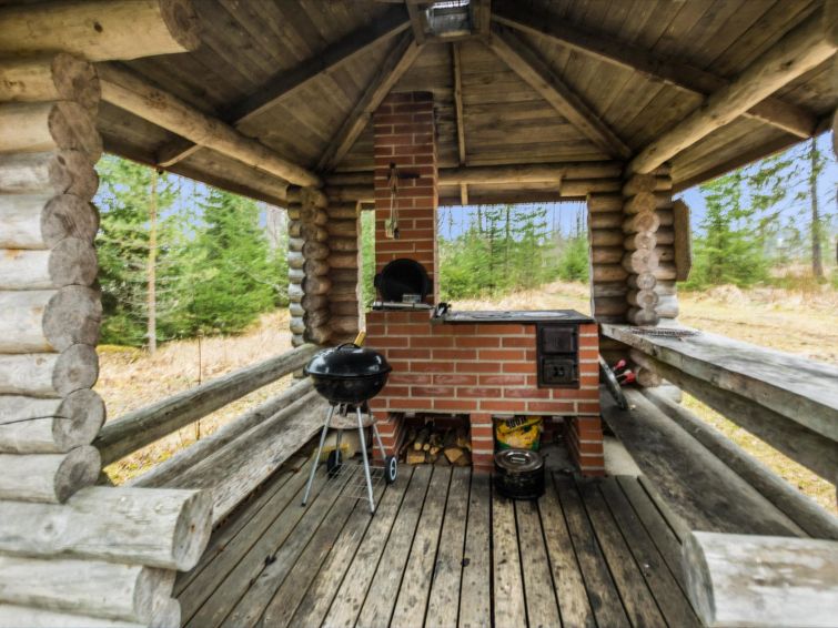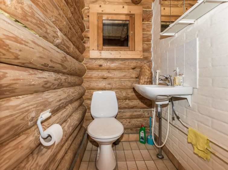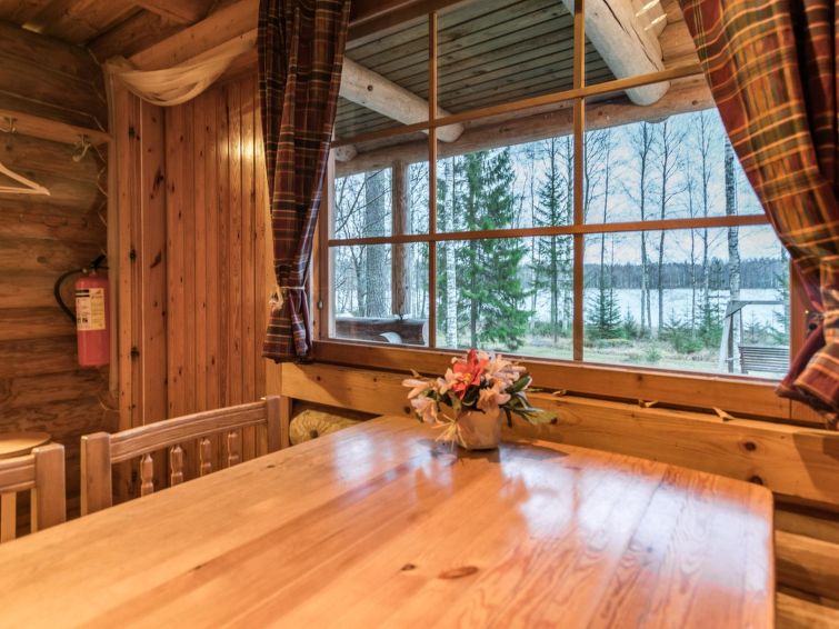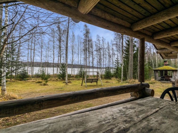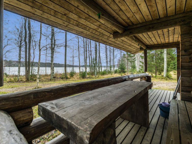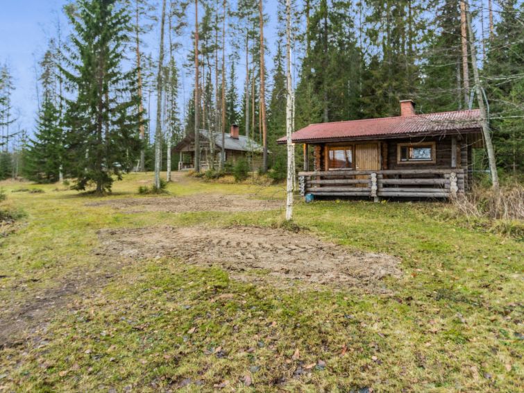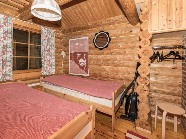 70 km east of Jyväskylä. Lake Hankavesi 35 m (length 7 km, breadth 3 km), shallow water, firm ans stony gravel/clay bottom. Own boat. Log cabin 1995, living room/kitchen, bedroom with 2 beds, bedroom with 1 bed (120 cm), sleeping loft with 2 mattresses, open veranda, balcony. Lakeside sauna with a shower, hearth room. Outside power point for the car. For hire bikes, motorboat and 2 canoes.