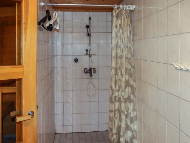 A semi-detached house located in the Ukkohalla tourism centre, for 2+3 persons, 37 m² + loft 15 m², built in 1990 kitchen, bedroom with a double bed, loft, sauna, shower room/toilet, terrace, fireplace and firewood. Double bed and 2 bed on the loft, a sofa-bed in the living room. WiFi.