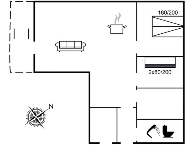 "Minka" - 75m from the sea in NW Jutland", 2 rom hus 68 m2. Passer for 4 voksne. Stue med, TV. 1 rom med, 1 dobbeltseng. 1 rom med, 1 x 2 køysenger. Kjøkken (4 kokeplater, stekeovn, oppvaskmaskin, mikrobølgeovn, frys). Dusj/WC. Utsikt av havet. Fasiliteter: Internett (trådløs LAN [WLAN]). Vennligst merk: røykfri bolig.