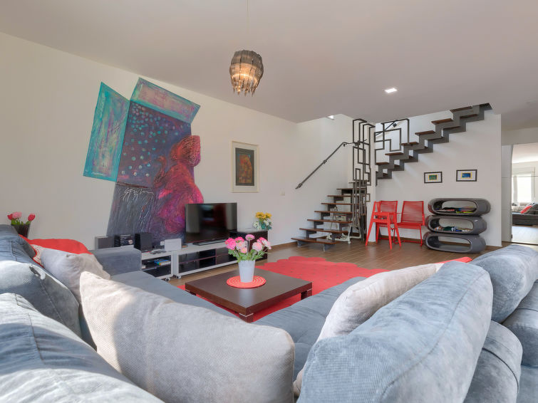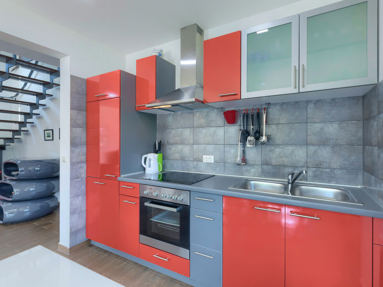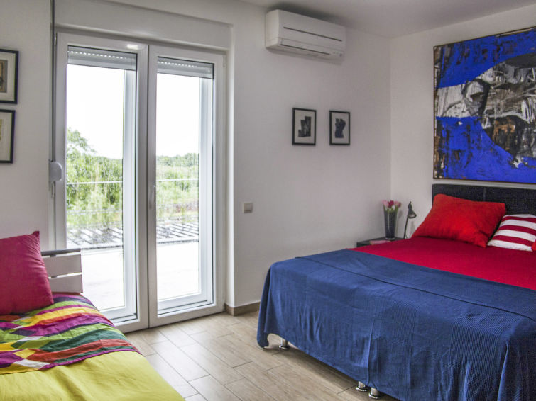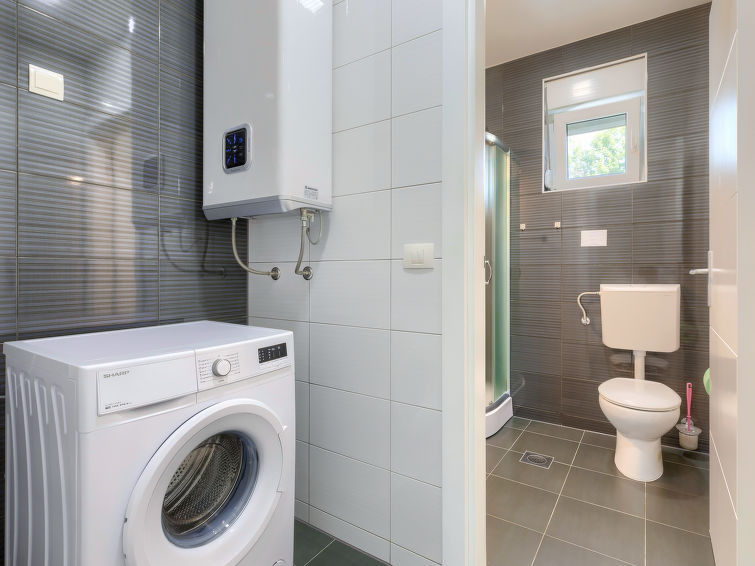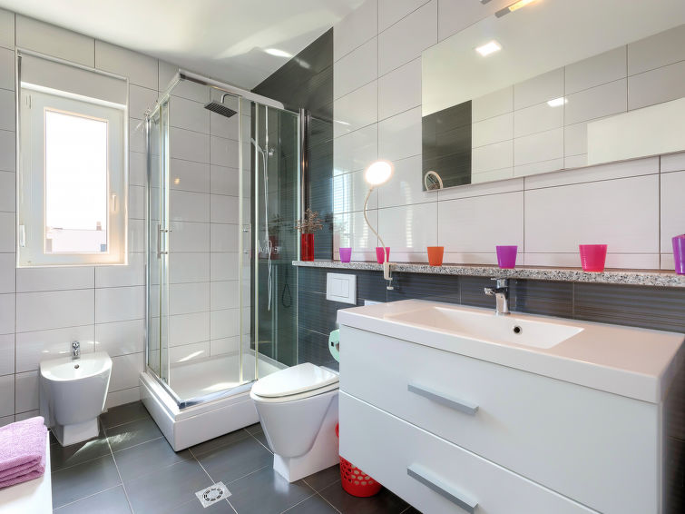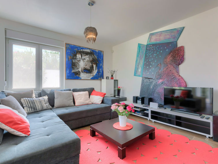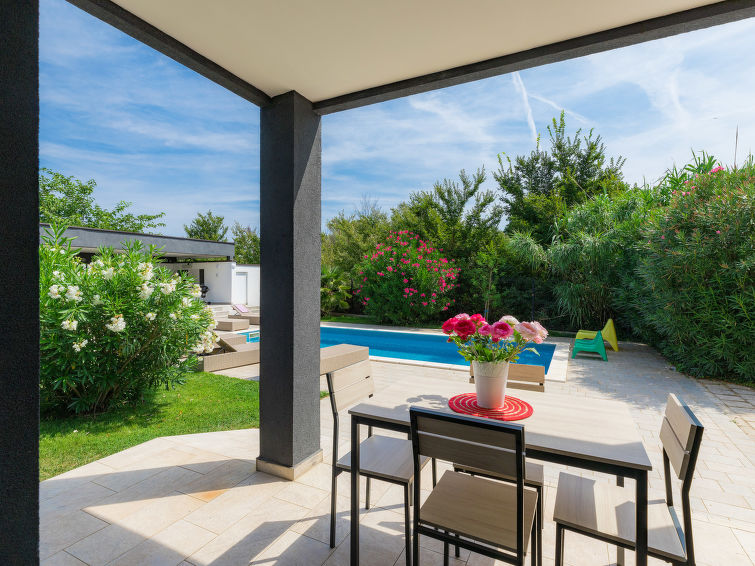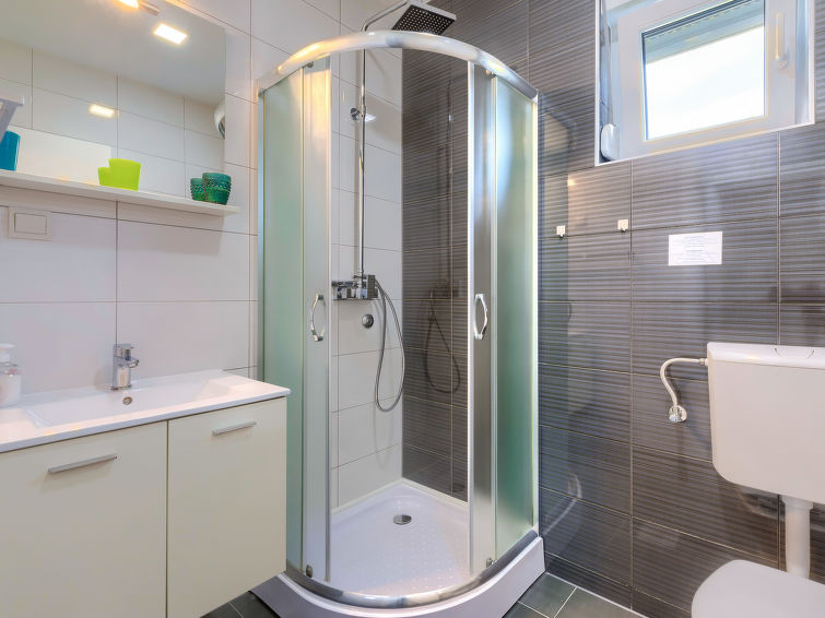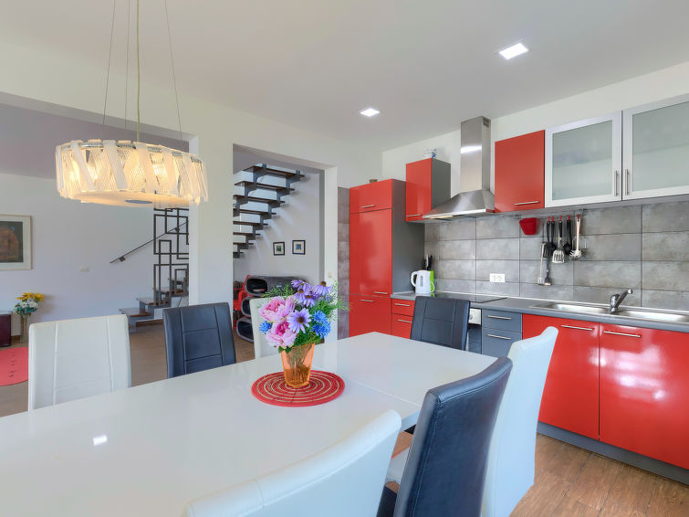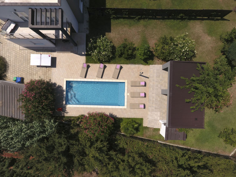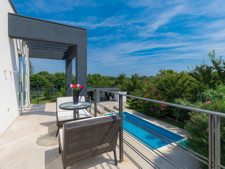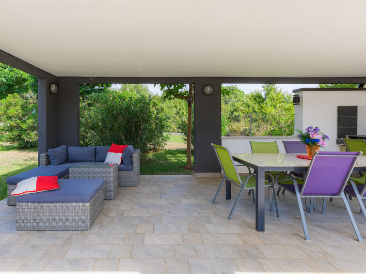 Moderne dobbelthus med 2 etasjer. 2 km fra sentrum av Medulin, 800 m fra sentrum av Ližnjan, 10 km fra sentrum av Pula, 1.4 km fra sjøen, 1.4 km fra stranden. Fellesbruk: lekeplass (rutsjebane, huske). Privat: tomt 700 m2 med plen, svømmebasseng (8 x 3 m, dybde 150 cm, Sesongåpent: 01.Mai. - 01.Okt.) med innebygde trapper. Utendørs dusj, bordtennis, terrasse, hagemøbler. I huset: internetilkobbling, alarm, vaskemaskin. Tilgang med bil hele veien til hbrukt (250 m naturvei). Parkering ved hbrukt. Butikk 400 m, småstenstrand 1.4 km, strand ved klipper 1.4 km. Eieren godtar ikke noen ungdomsgrupper.