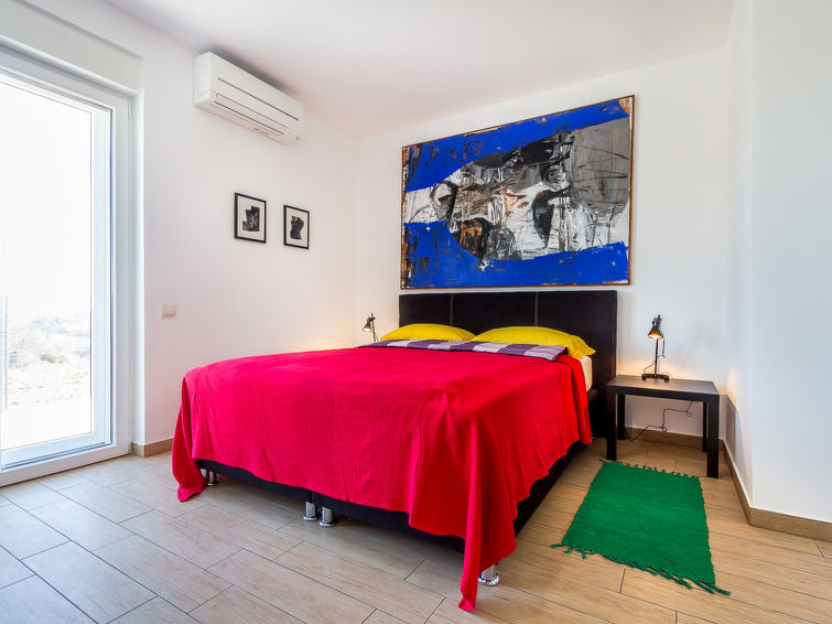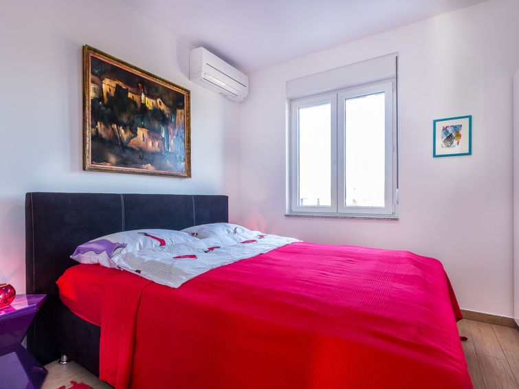 "Mirela (MDN157)", 4 rom halvpart av tomannsbolig 120 m2 på 2 etasjer. Moderne og stilfullt møbler: stue/spisestue med, satelit-TV (flatskjerms TV), air-conditioning. Utgang til terrassen. Åpent kjøkken (stekeovn, oppvaskmaskin, 4 keramiske kokeplater, brødrister, vannkoker, mikrobølgeovn, frys, elektrisk kaffemaskin). Dusj/WC. øverste etasje: 2 rom, hvert rom med 1 seng, 1 dobbeltseng og air-conditioning. Utgang til balkongen. 1 rom med, 1 dobbeltseng og air-conditioning. Dusj/WC. Varmluftsoppvarming. Balkong, terrasse. Terrassemøbler, balkongmøbler grill (flyttbar), liggestoler. Fasiliteter: vaskemaskin, barneseng. Internett (trådløs LAN [WLAN], gratis). Vennligst merk: røykfritt hus.