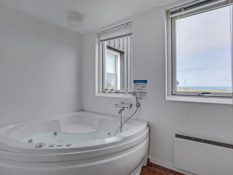 "Mirjami" - 75m from the sea in NW Jutland", 3 rom hus 100 m2. Passer for 6 voksne + 1 barn. Stue med, TV og radio. 1 rom med 2 senger. 1 rom med 2 senger og 1 dobbeltseng. 1 rom med 2 senger og 1 dobbeltseng. 1 rom med 2 senger. Kjøkken (4 kokeplater, stekeovn, oppvaskmaskin, mikrobølgeovn, frys). Dusj/WC, boblebad. Terrasse 20 m2, dekt. Utsikt av havet. Fasiliteter: høy barnestol barneseng (ekstra). Internett (trådløs LAN [WLAN]).