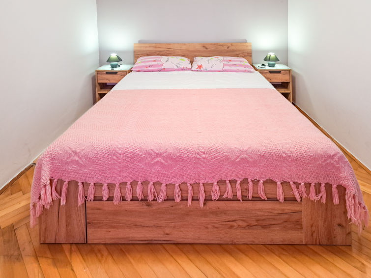 4 rom rekkehus på 2 etasjer. øverste etasje: stue med, satelit-TV og air-conditioning. Utgang til terrassen. 1 rom med, 1 dobbeltseng. Spisestue. Åpent kjøkken (1 kokeplate, stekeovn, 3 gassbrennere, brødrister, vannkoker, mikrobølgeovn, elektrisk kaffemaskin). Dusj/bidé/WC. øverste etasje: 1 rom med, 1 dobbeltseng (160 cm, lengde 200 cm). 1 rom med 2 senger. Oppvarmingsalternativ. Terrasse. Terrassemøbler, grill (flyttbar). Fasiliteter: Internett (trådløs LAN [WLAN], gratis). Vennligst merk: røykfritt hus. Max kjæledyr / hund tillatt 1 kjæledyr / hund tillatt.